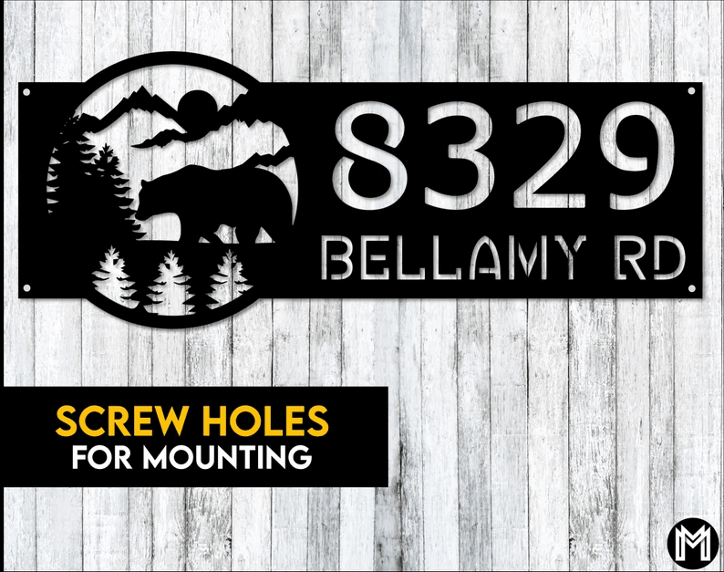 Bear in Nature Address Sign – Bear Custom Metal Sign – Bear Address Plaque Mountains Tree Address Metal Sign | GearViral