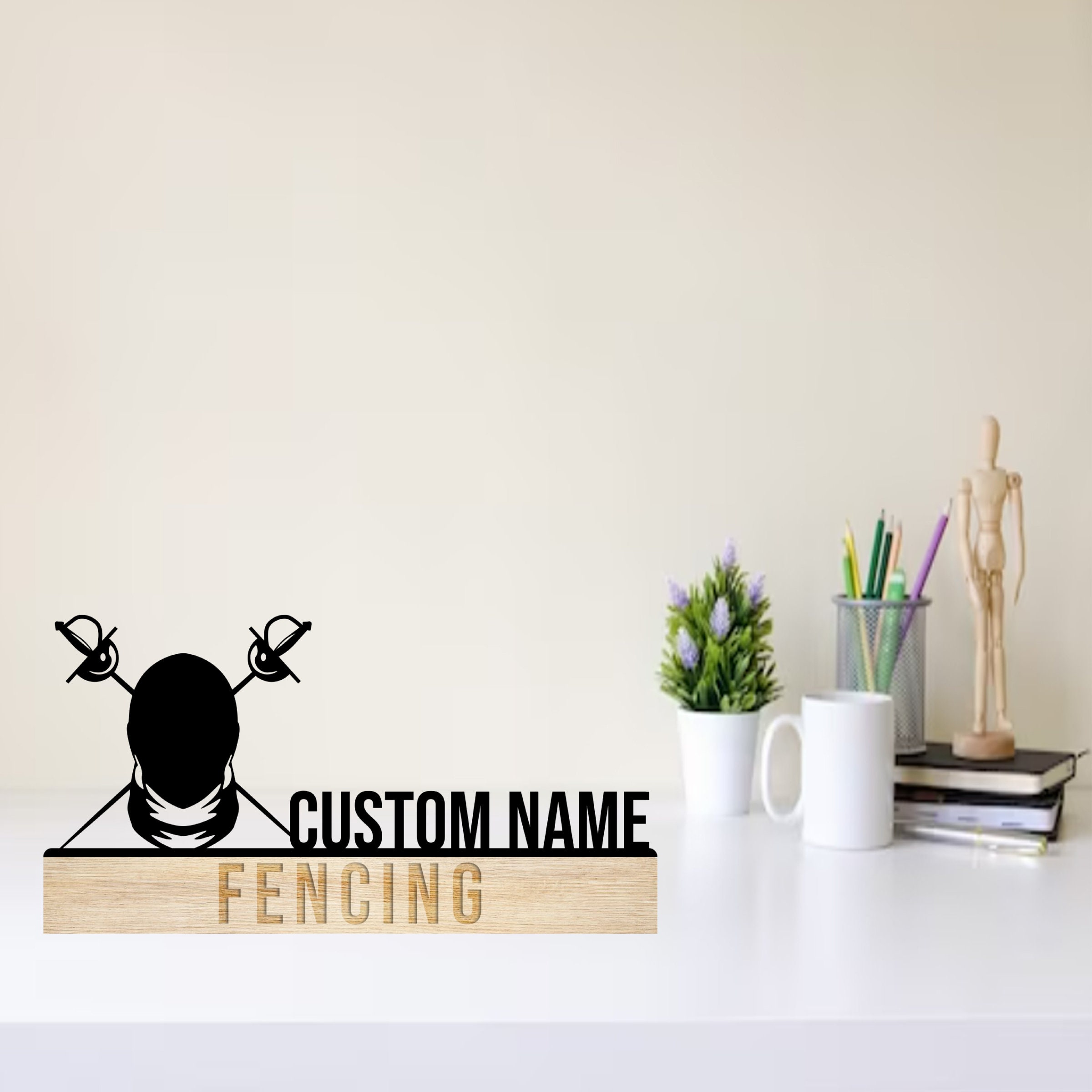 Custom Fencing Desk Name Plate – Fencing Metal Nameplate For Desk – Desk Nameplate – Office Decor | GearViral