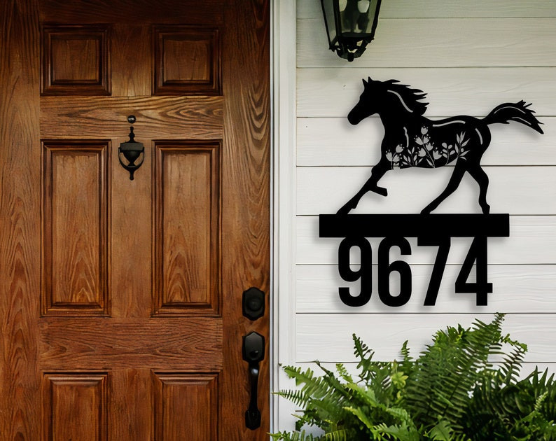Custom Floral Horse Metal sign – Metal Address sign – Farmhouse Decor – Outdoor Address sign | GearViral