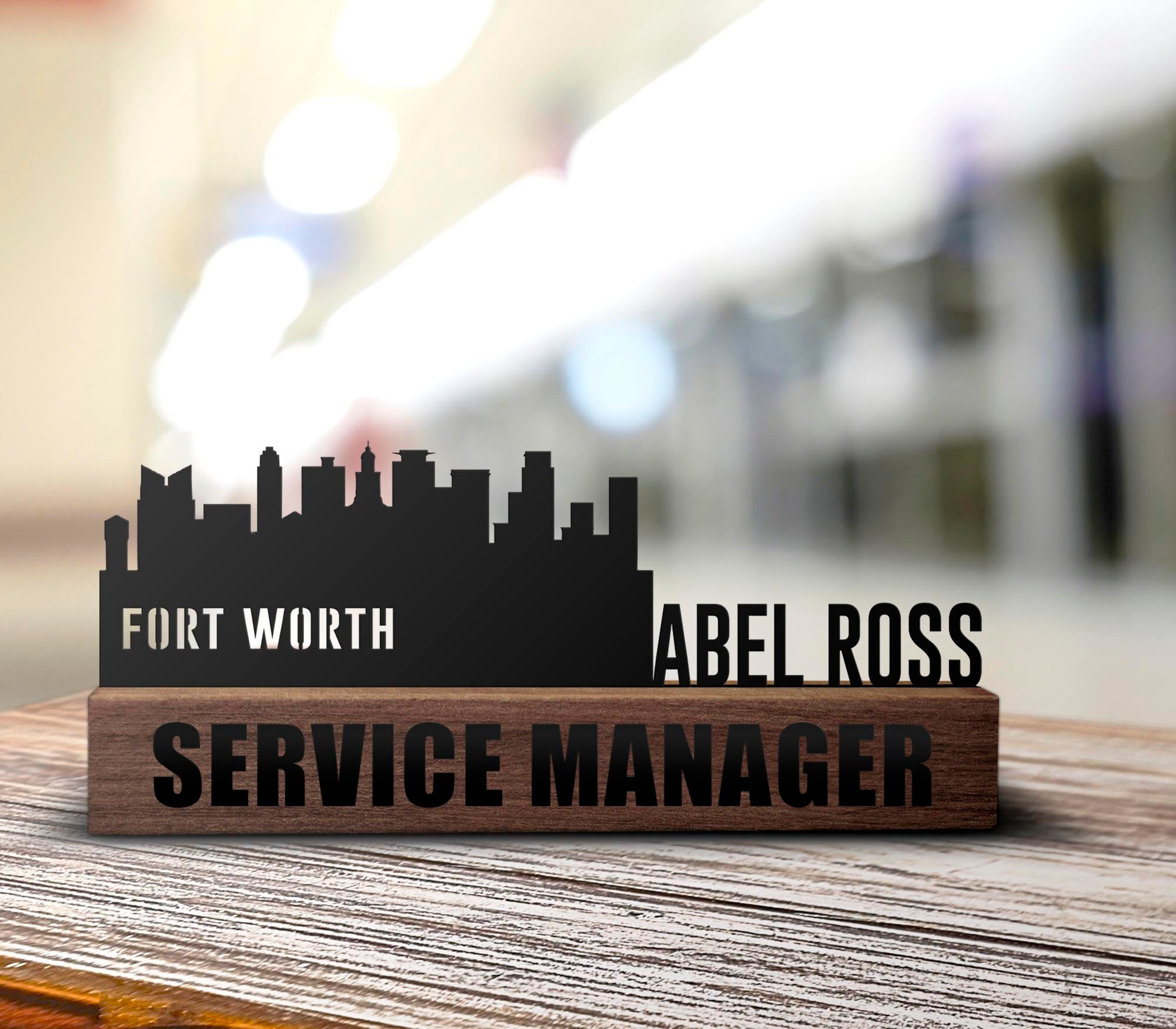 Custom Fort Worth Skyline Desk Name Plate Wedge Personalized US City Skyline Nameplate Office Sign Company Plaque Decor PhD Graduation Gifts | GearViral