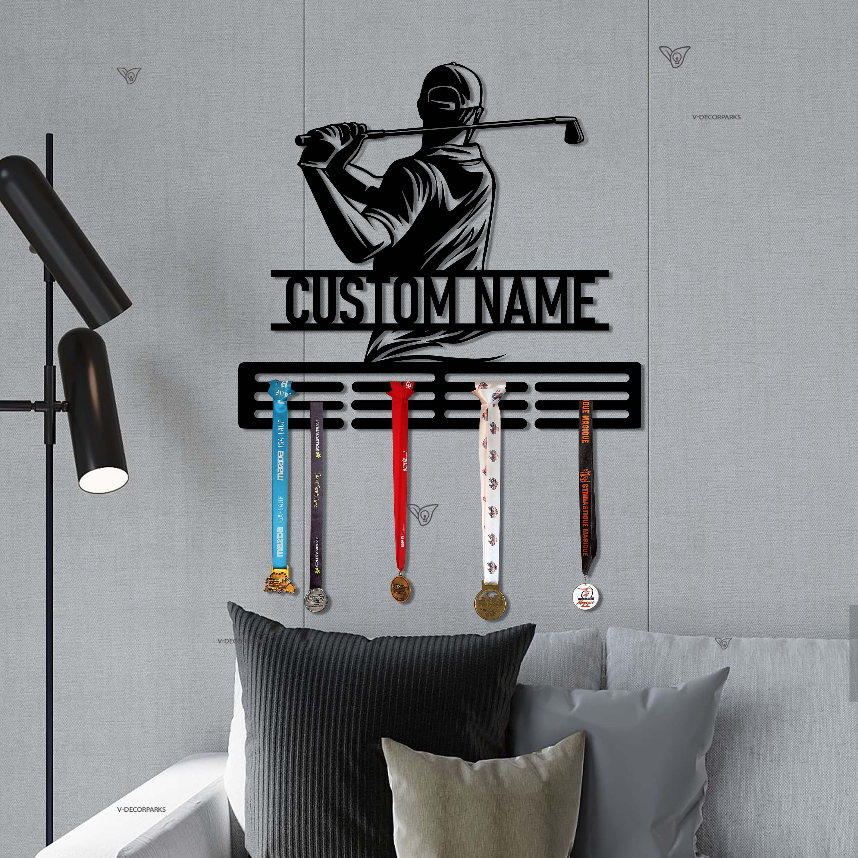 Custom Golf Lover Medal Hanger Metal Wall Art – Golf Gift – Golfer Medal Holder – 12 Rungs for Medals & Ribbons | GearViral