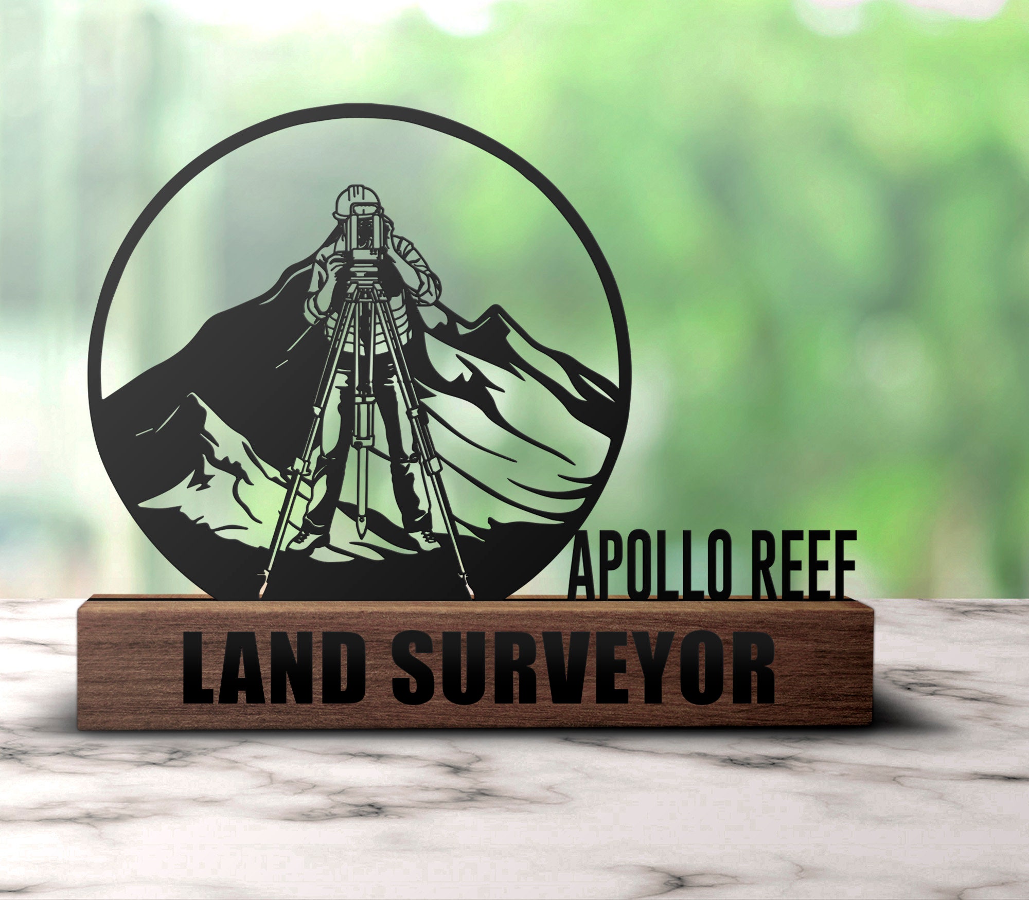 Custom Land Surveyor Desk Name Plate Wedge Personalized Construction Nameplate Office Sign Company Shelf Tabletop Gift Plaque Decor | GearViral