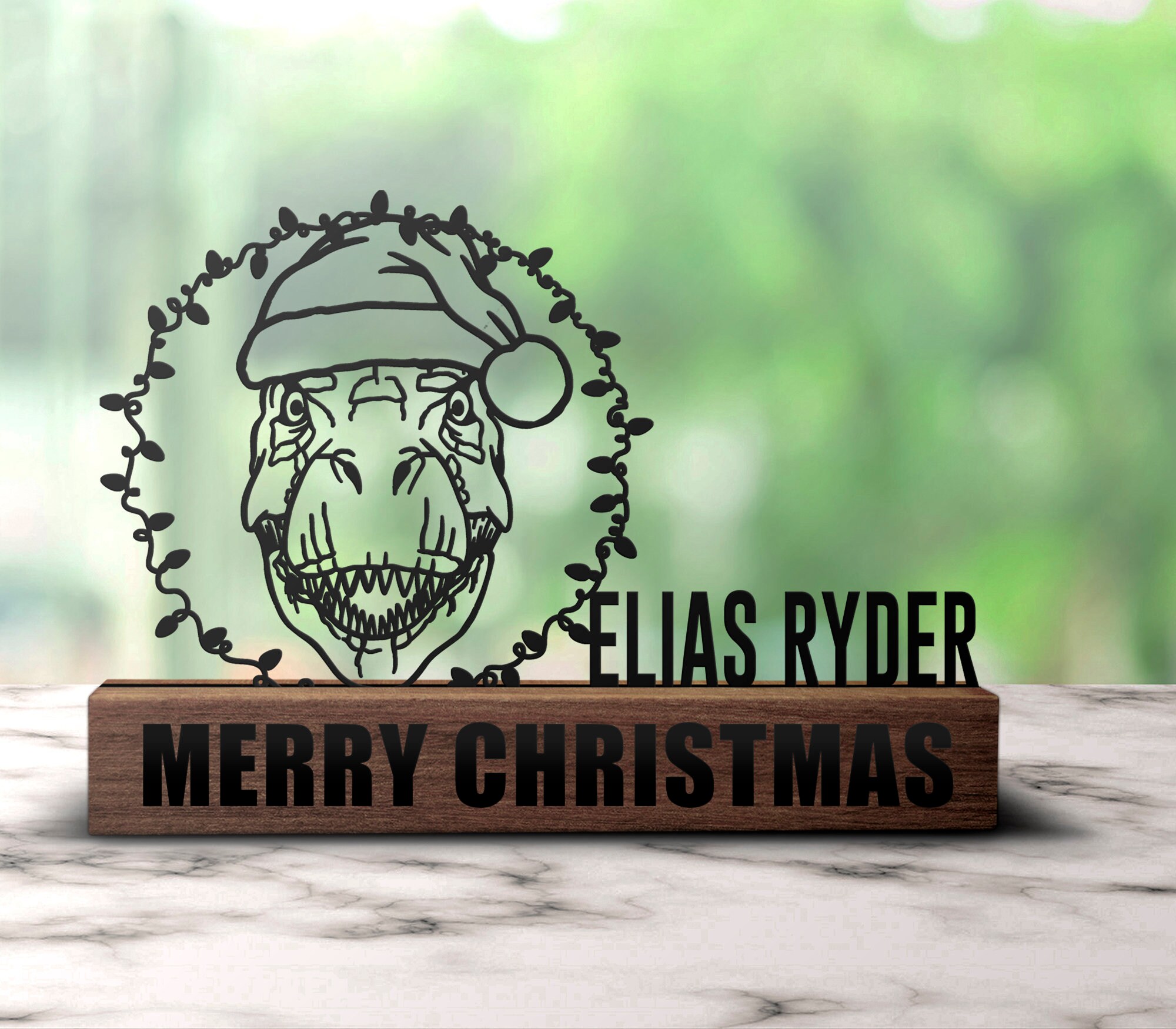 Custom Merry Christmas Desk Name Plate Wedge Personalized Dinosaur Santa Hat Family Gift Nameplate Office Sign Plaque Art Home Bedroom Decor | GearViral