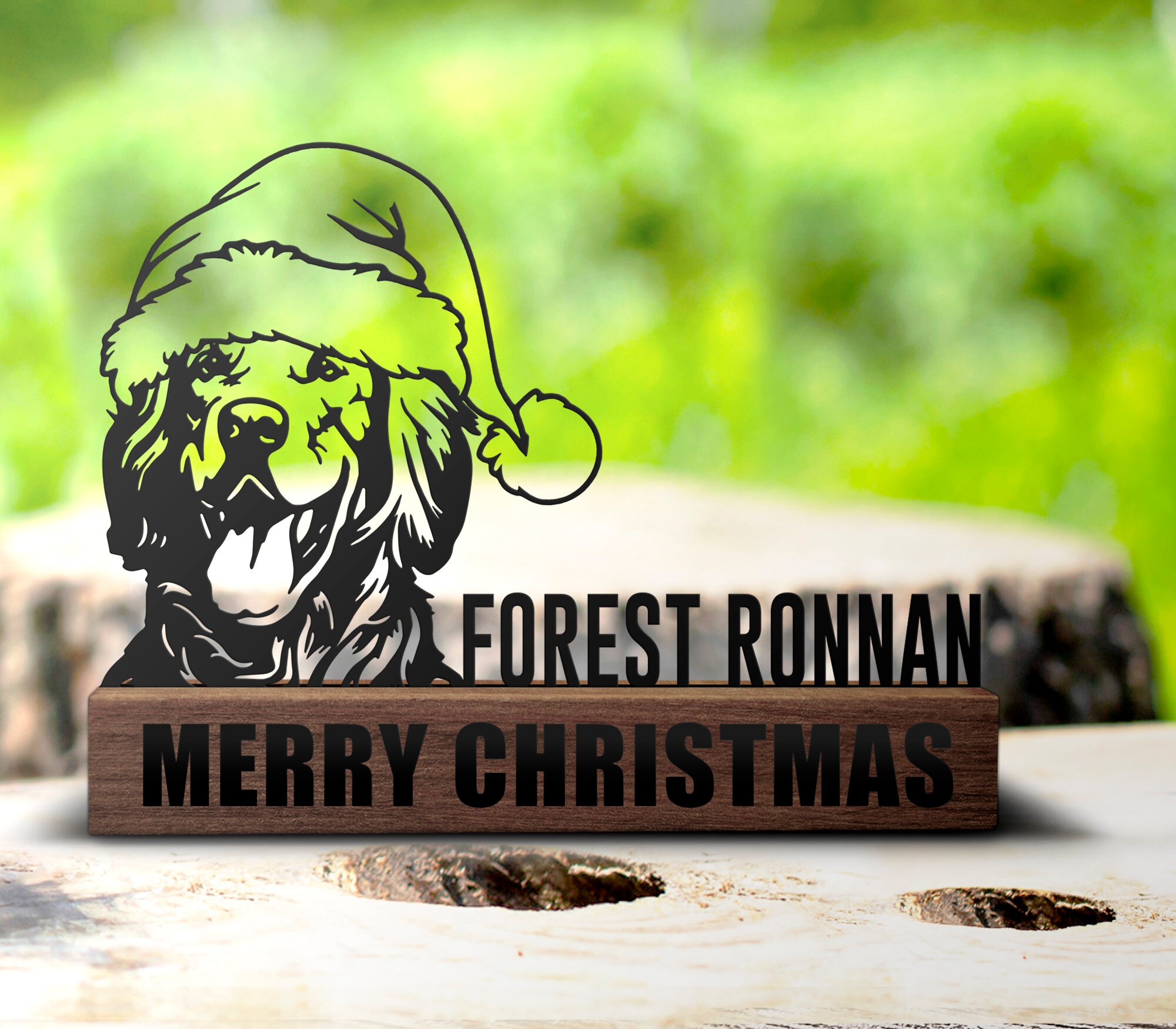Custom Merry Christmas Desk Name Plate Wedge Personalized Golden Retriever Dog Santa Hat Family Gift Nameplate Office Sign Home Decor | GearViral