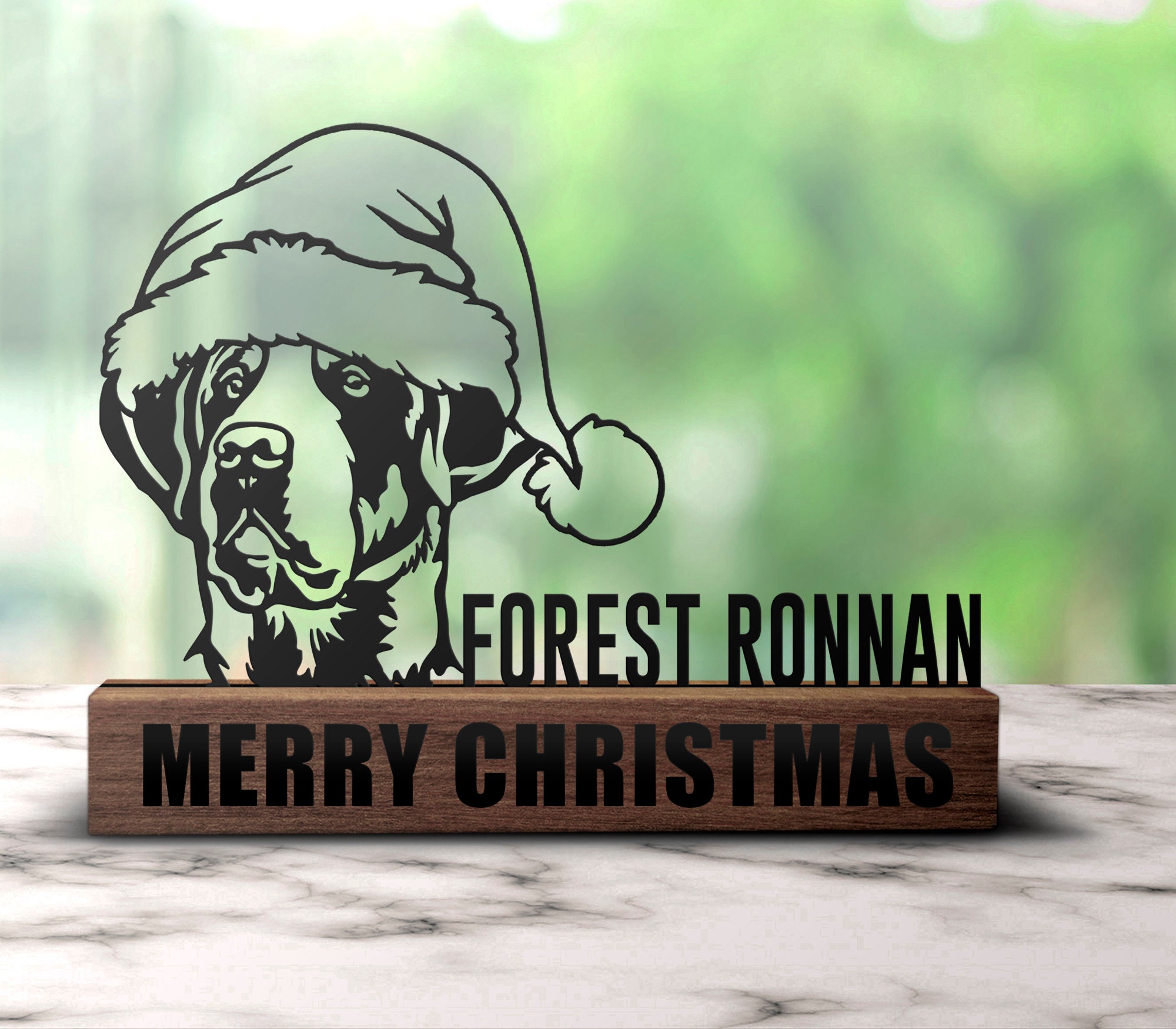 Custom Merry Christmas Desk Name Plate Wedge Personalized Greater Swiss Mountain Dog Santa Hat Family Gift Nameplate Office Sign Home Decor | GearViral