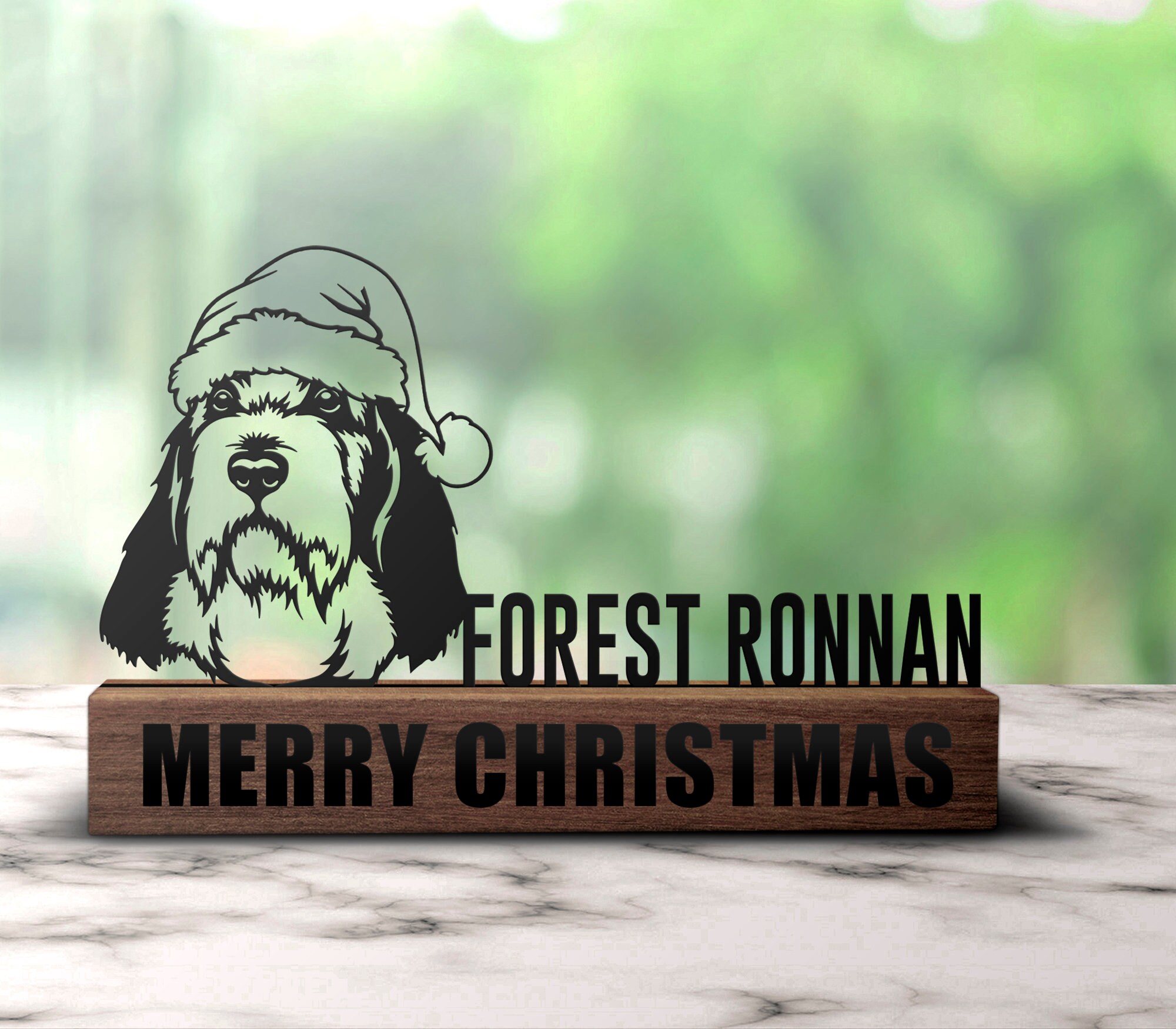 Custom Merry Christmas Desk Name Plate Wedge Personalized Petits Bassets Griffons Dog Santa Hat Family Gift Nameplate Office Sign Home Decor | GearViral