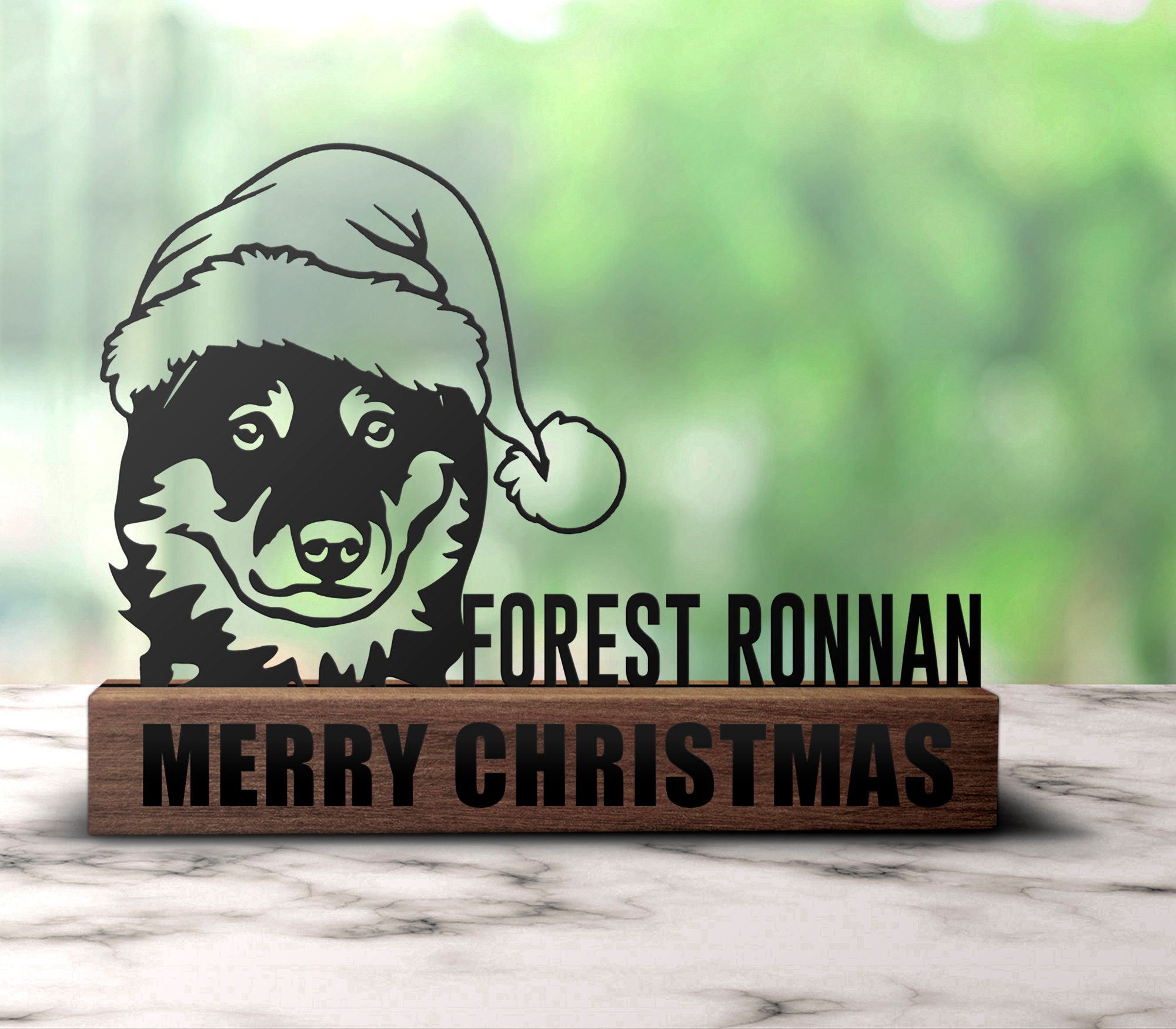 Custom Merry Christmas Desk Name Plate Wedge Personalized Shiba Inu Dog Santa Hat Family Gift Nameplate Office Sign Home Decor | GearViral