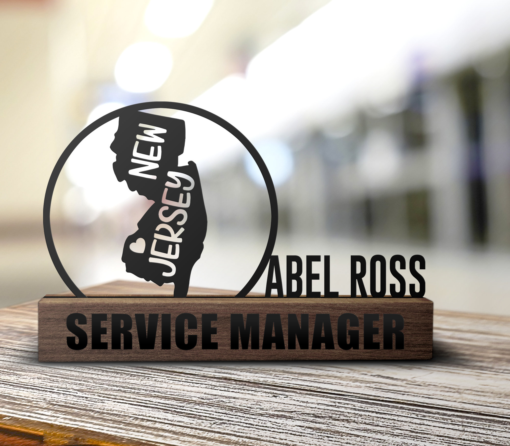 Custom New Jersey Map Desk Name Plate Wedge – Personalized Born in New Jersey State Nameplate Office Sign Company Shelf Tabletop Plaque Decor | GearViral
