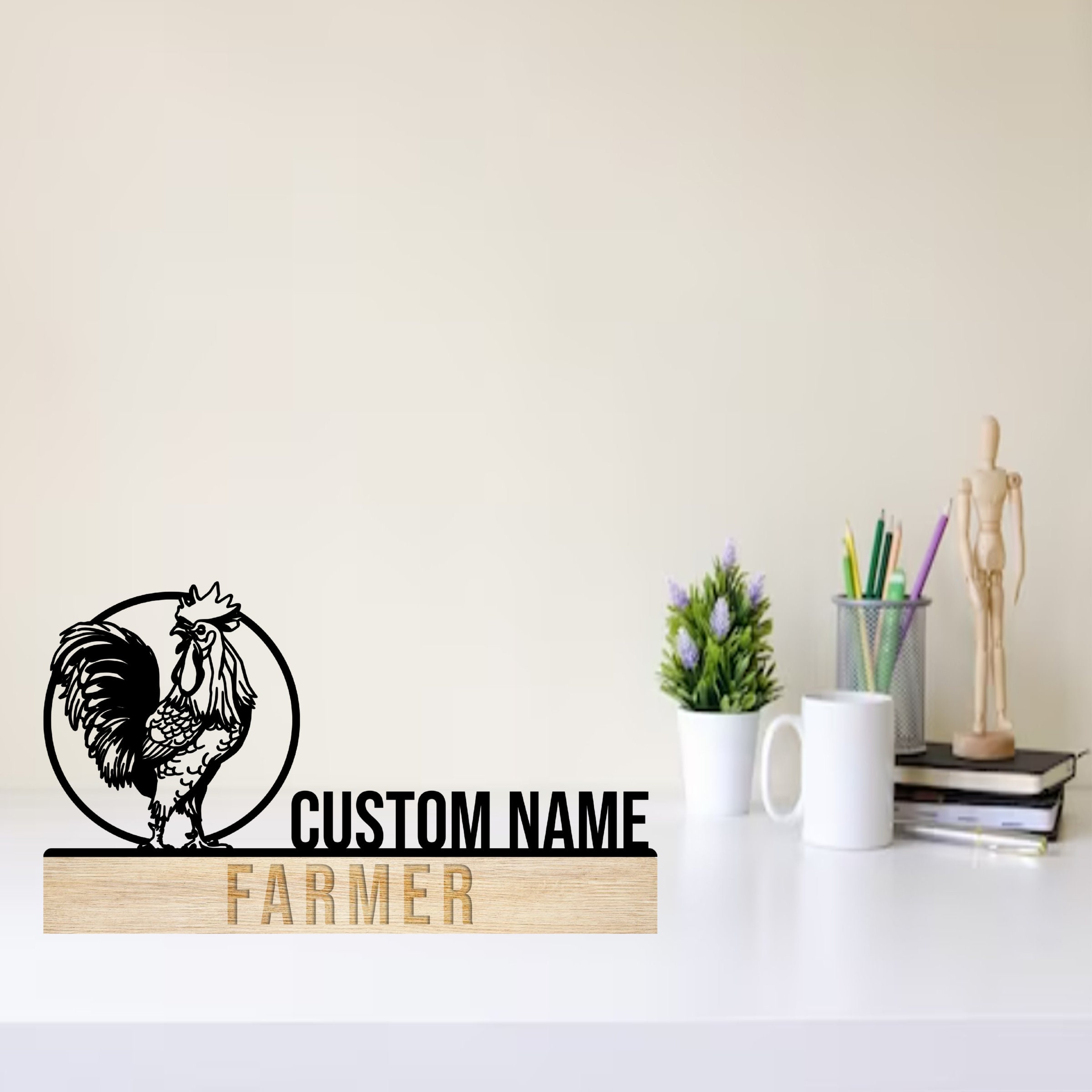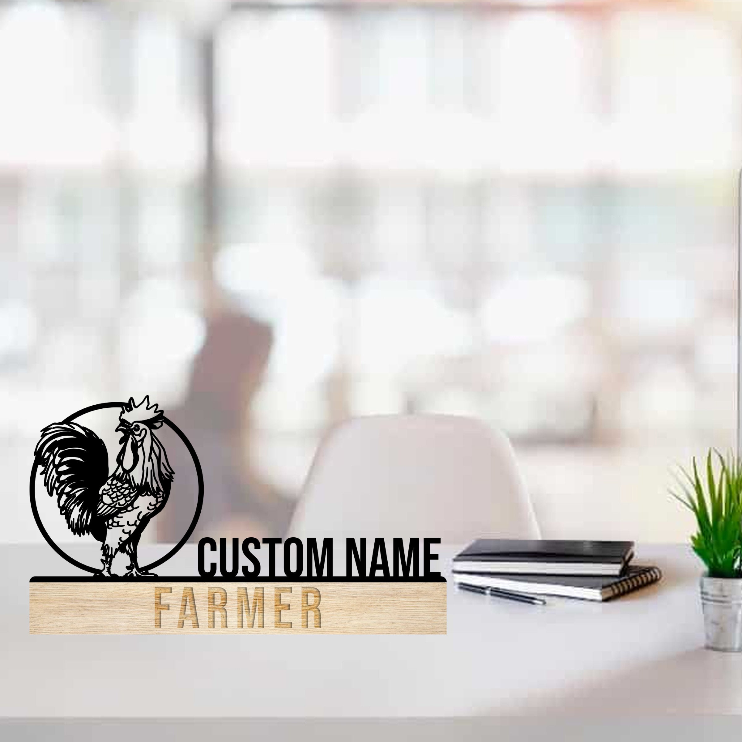 Custom Rooster Farmer Desk Name Plate – Rooster Farmer Metal Nameplate For Desk – Desk Nameplate – Office Decor | GearViral
