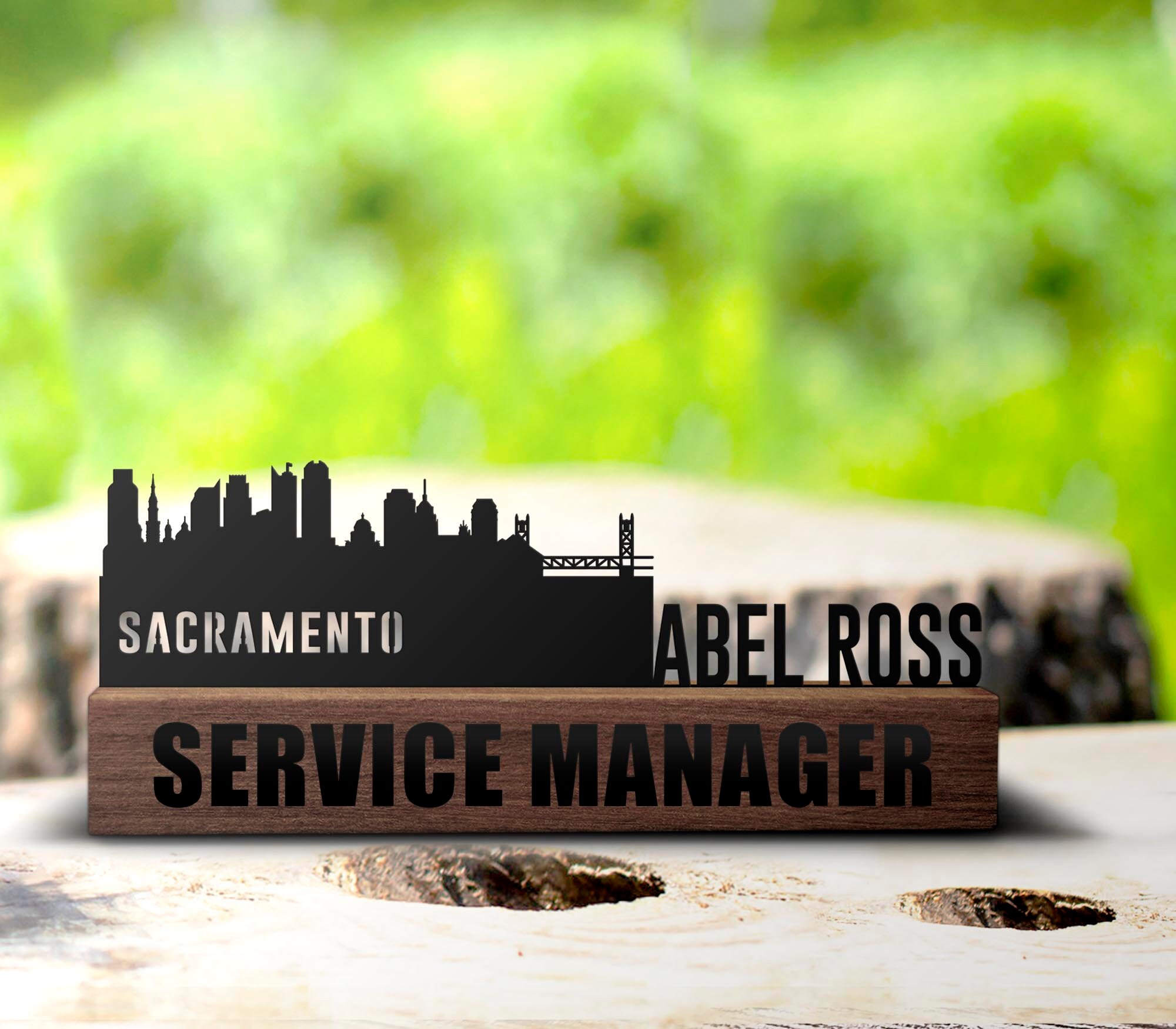 Custom Sacramento Skyline Desk Name Plate Wedge Personalized US City Skyline Nameplate Office Sign Company Plaque Decor PhD Graduation Gifts | GearViral
