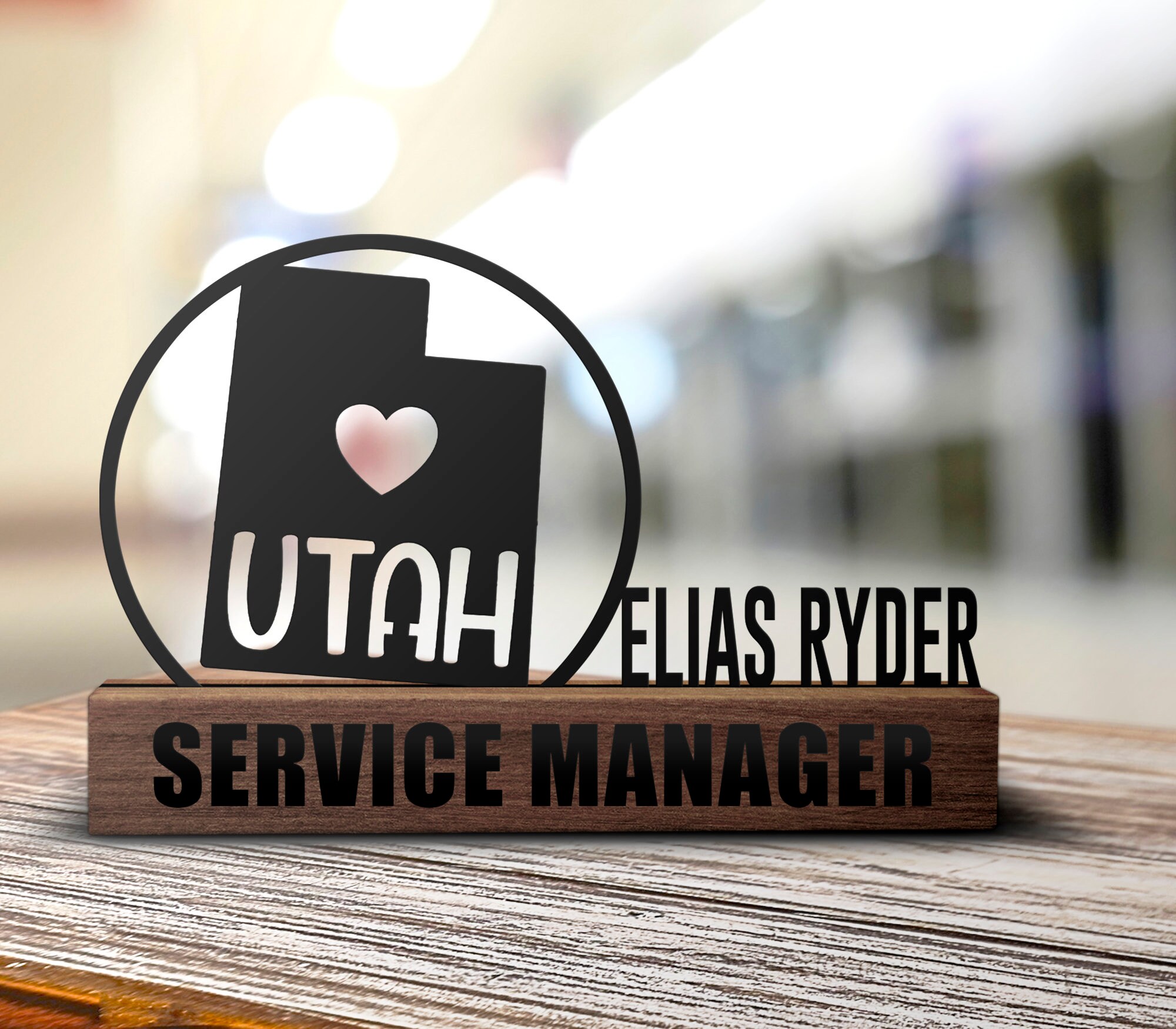 Custom Utah Map Desk Name Plate Wedge – Personalized Born in Utah State Nameplate Office Sign Company Plaque Decor | GearViral