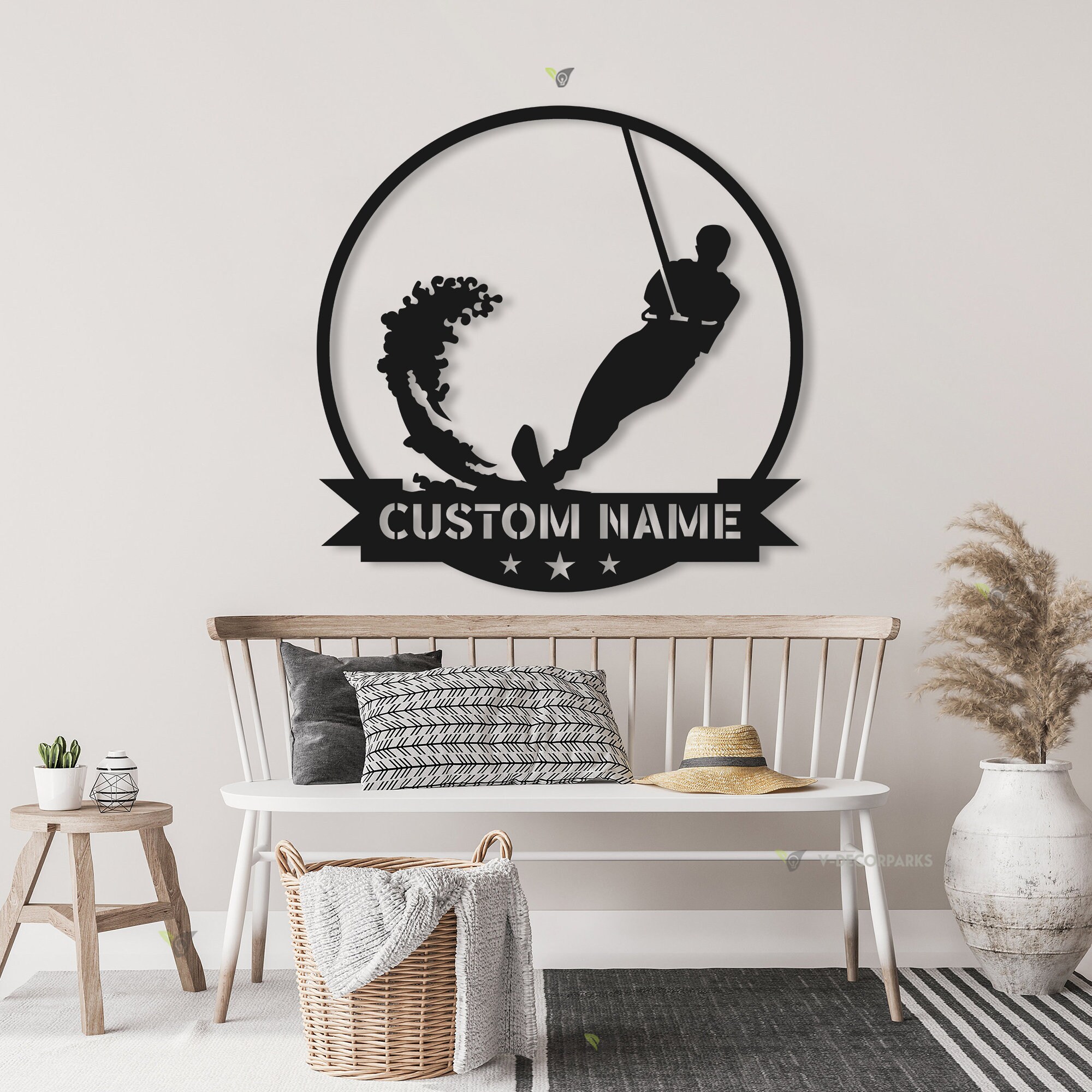 Custom Water Skiing Metal Wall Art LED Light – Personalized Wakeboarding Name Sign Home Decor – Ideal for Home Decor & Gift – Water Skiing Gift | GearViral