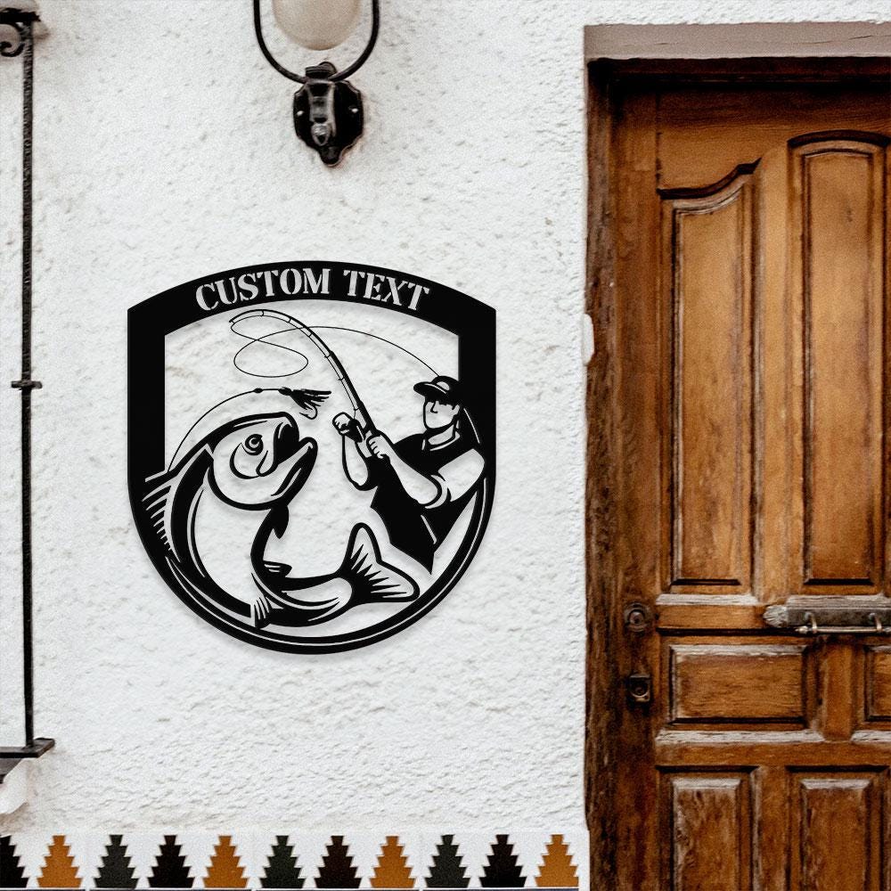 Fishing Number Address Metal Sign, Personalized Family Name Metal Sign, Outdoor Door Decor, Address Wall Art, Gift for Housewarming
