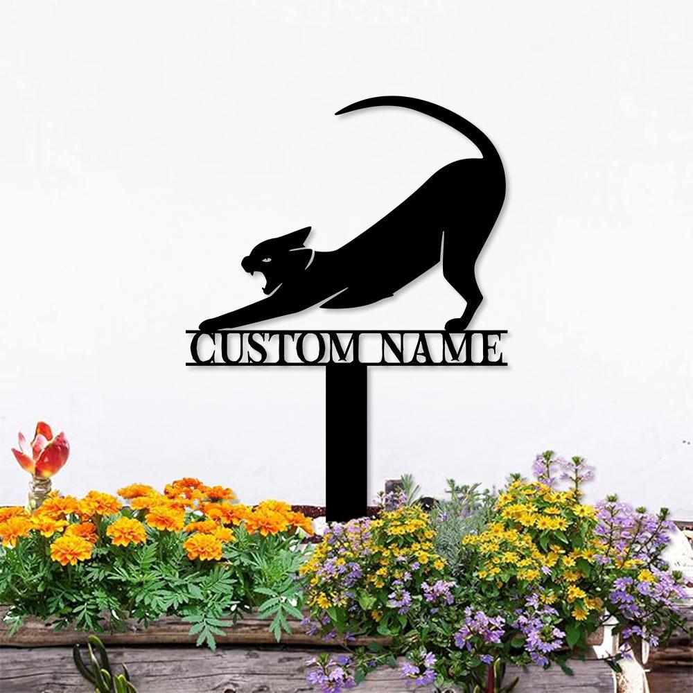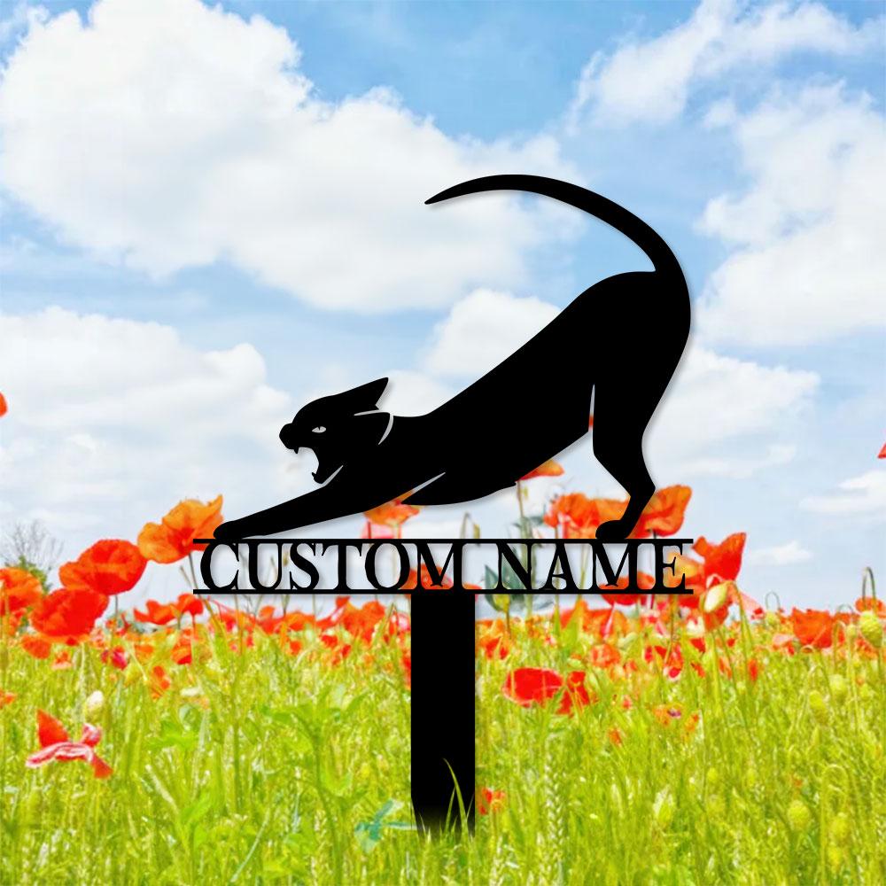 Funny Cat Metal Sign – Black Cat Garden Metal Stake, Personalized Family Name Yard Sign,Outdoor Door Garden Decor, Garden Art, Housewarming