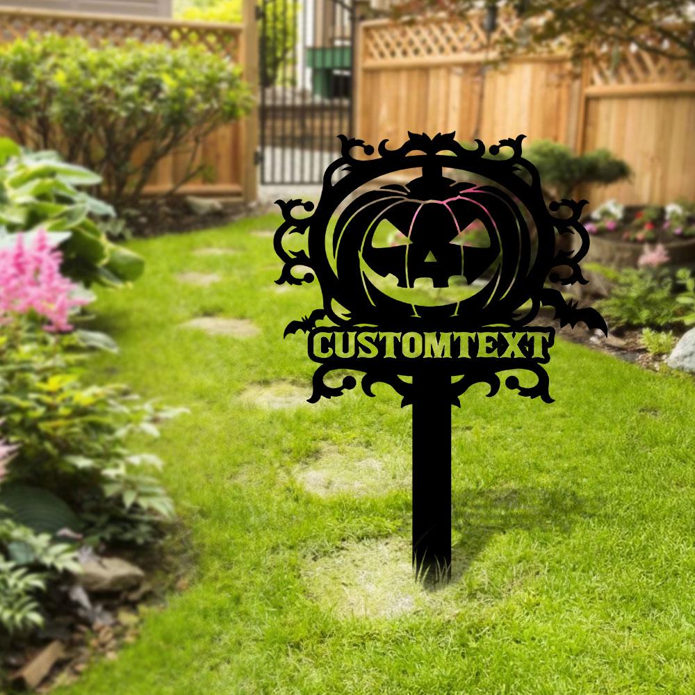 Halloween Pumpkin Metal Sign, Halloween Garden Metal Stake, Personalized Name Yard Sign, Outdoor Door Garden Decor, Garden Art, Housewarming