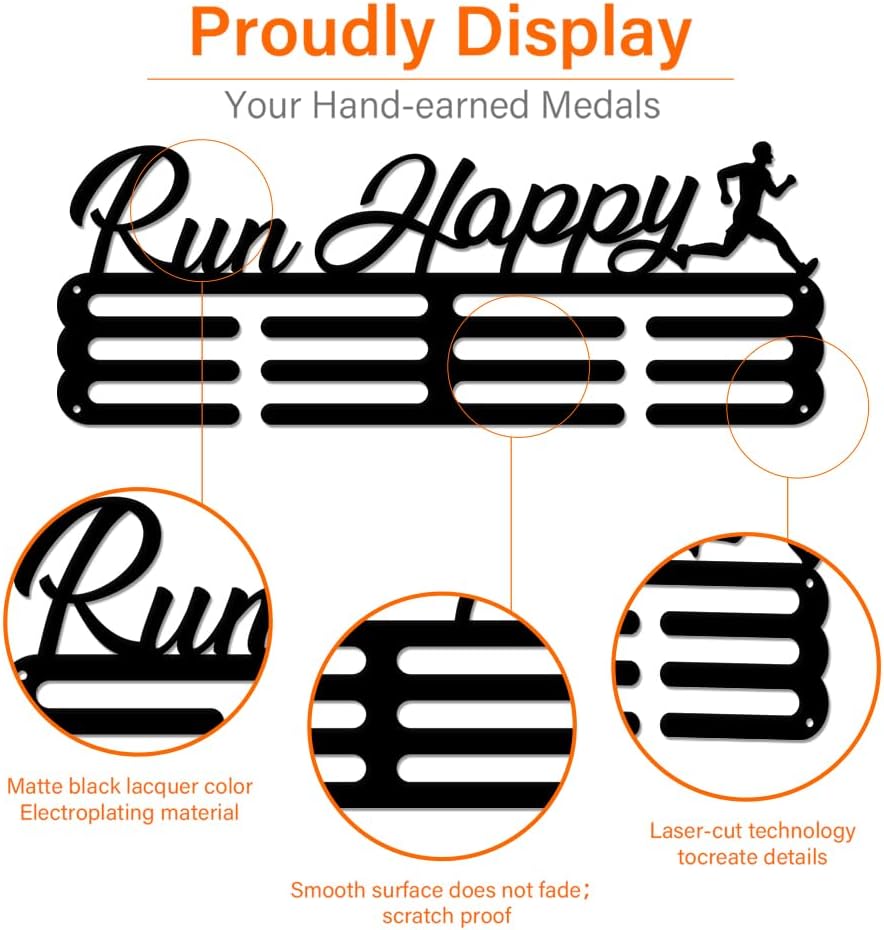 Happy Running Medal Holder Display Hanger Exercise Medal Hooks Display Medals Iron Medal Hook for Competition Medal Hanger Award Holder for Wall Display Wall Hanging 40x15CM | GearViral
