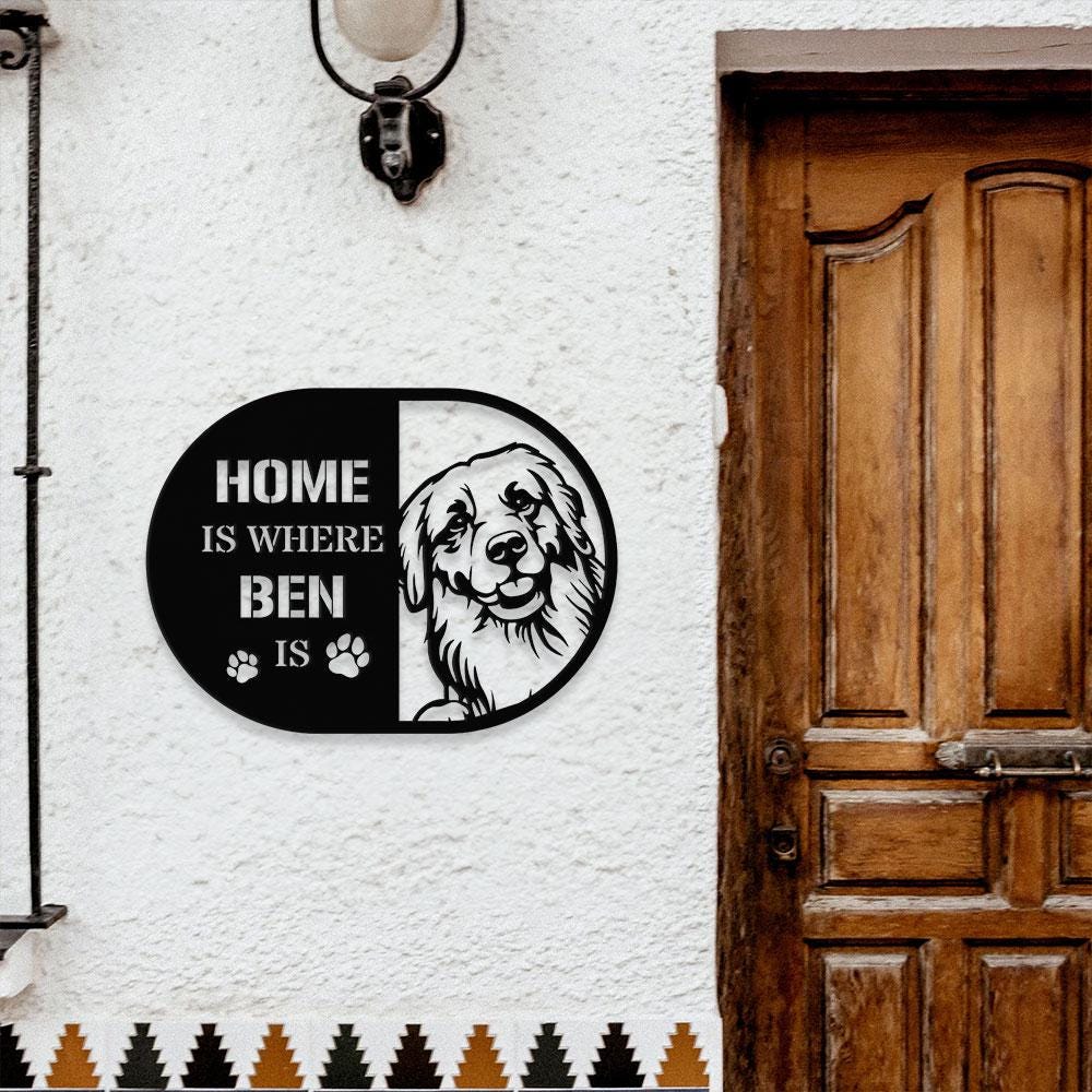 Home is Where Dog Is Golden Metal Name Sign With LED Lights, Personalized Letter Last Name, Dog Lover Metal Sign, Dog Metal sign