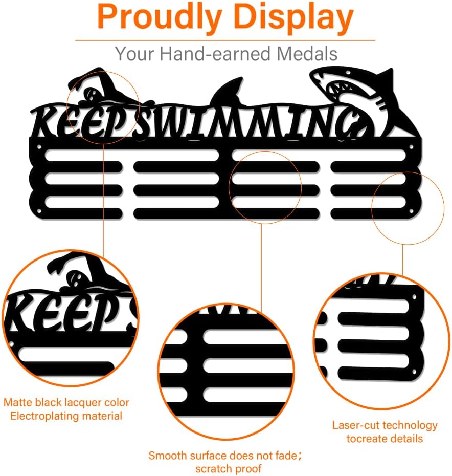 Keep Swimming Medal Hanger Display Rack Shakes Funny Medal Holder Iron Hook Frame Ribbon Wall Mounted Award Holder for 60+ Swimming Competition Metal Medal Hanger | GearViral