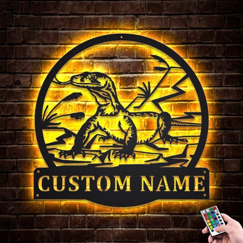 Komodo Dragon Metal Sign LED Lights – Custom Komodo Dragon Metal Sign – Komodo Dragon Wall Hanging For Decoration – Komodo Neon Decor | GearViral