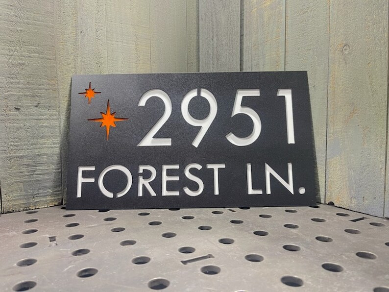 Metal Mid Century Modern Atomic Star Address Sign Custom Plasma Cut Sign Art | GearViral