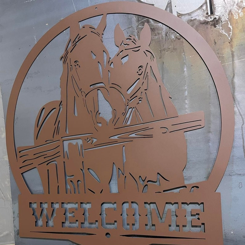Metal Pair of Horses Sign Welcome – Last Name – Address – Custom Wording plasma cut sign art custom paint and size | GearViral