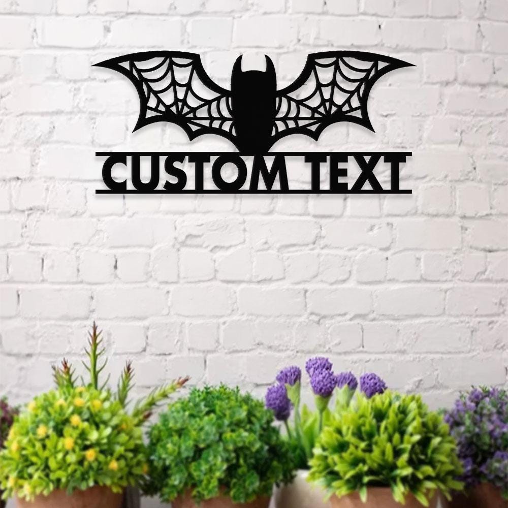 Metal Sign Bat Halloween Name Sign, Personalized Name LED Lights, Halloween Sign, Outdoor Door Monogram, Halloween Metal sign