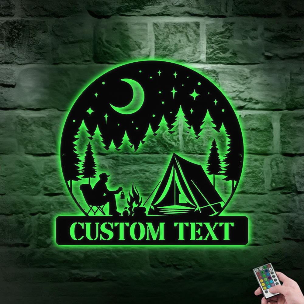Moon Mountain Camping Name Hunting Metal Sign | Housewarming Gift – Last Name Initial Hanging – Personalize Metal Sign – Metal Decor