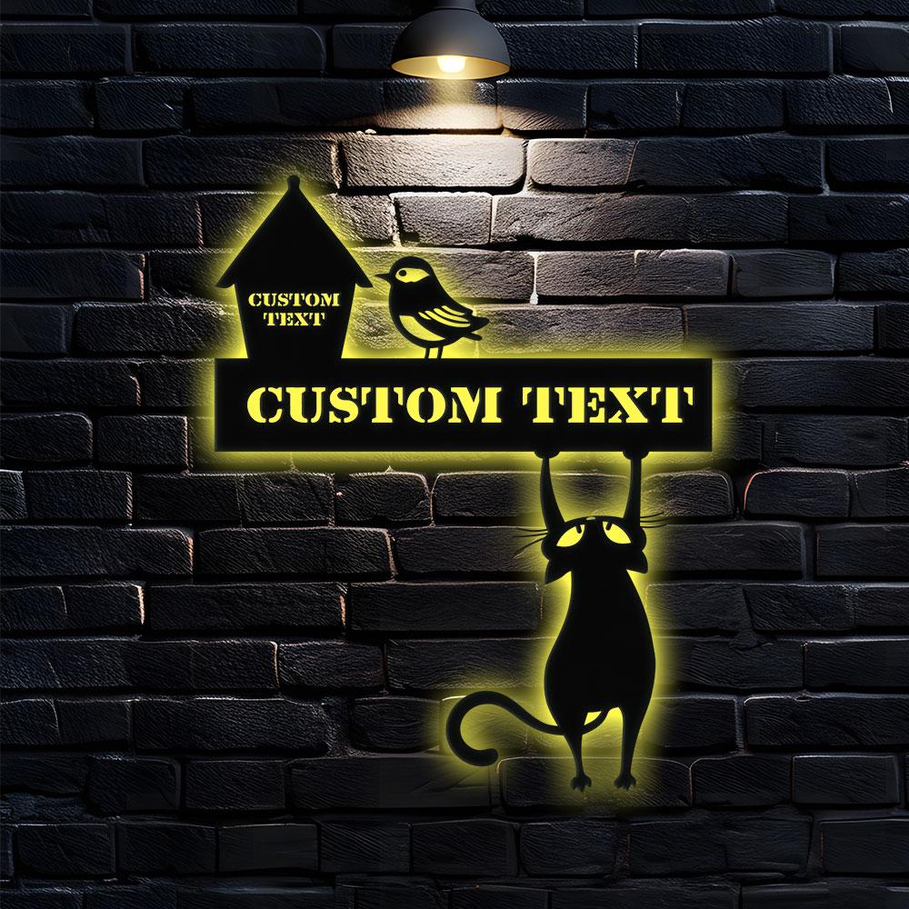 Naughty Cat Address Metal Sign, Personalized Family Led Sign, Outdoor Door Decor, Personalized Address Wall Art, Gift for Housewarming