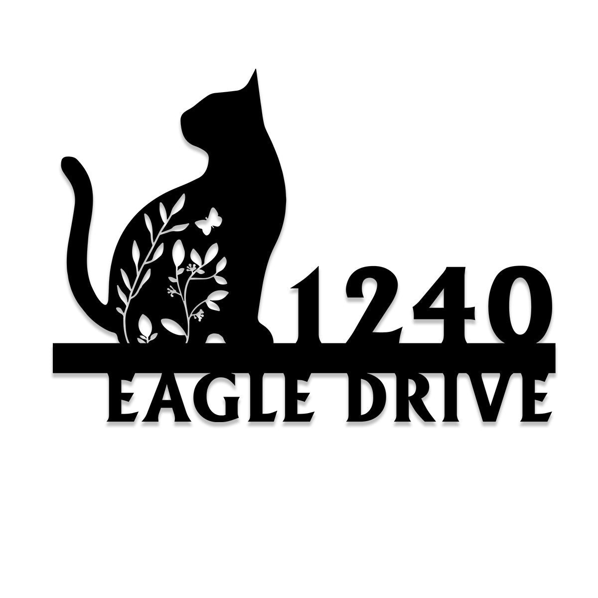 Personalized Address Cat Art Metal Sign – Custom Housewarming Metal Art – Wall Decor – Metal Laser Cut Metal Signs Custom Gift Ideas | GearViral