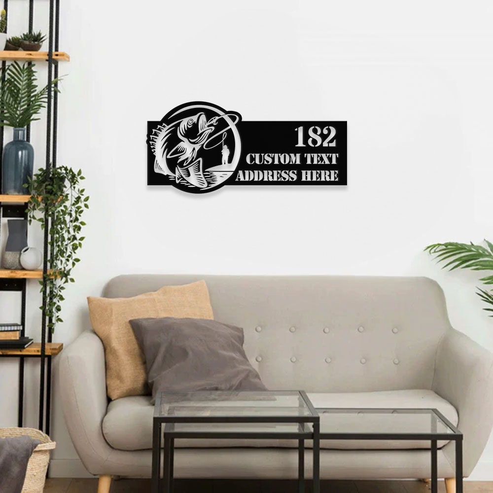 Personalized Bass Address Metal LED Sign – Fisherman Address Metal Wall Art – Outdoor Sign – Family LED Address Wall Art – Housewarming