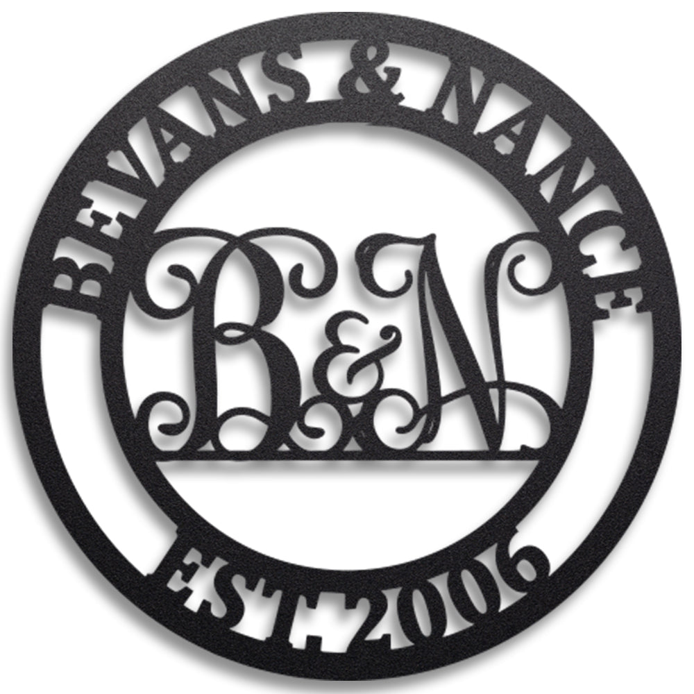 Personalized Couple Monogram Sign – Circle Cut Metal Sign – Custom Gift For New Family – House Name Decor Sign | GearViral