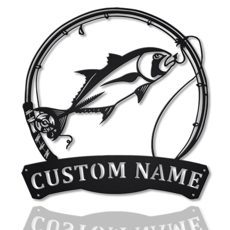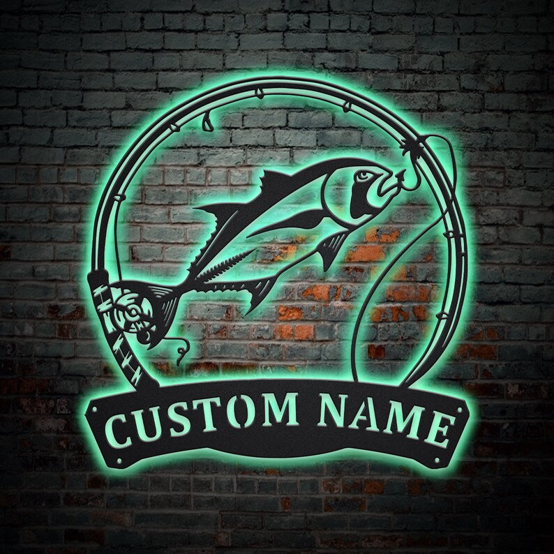 Personalized Giant Threadfin Fish Pole Monogram Metal Sign With LED Lights – Custom Giant Threadfin Fish Metal Sign | GearViral
