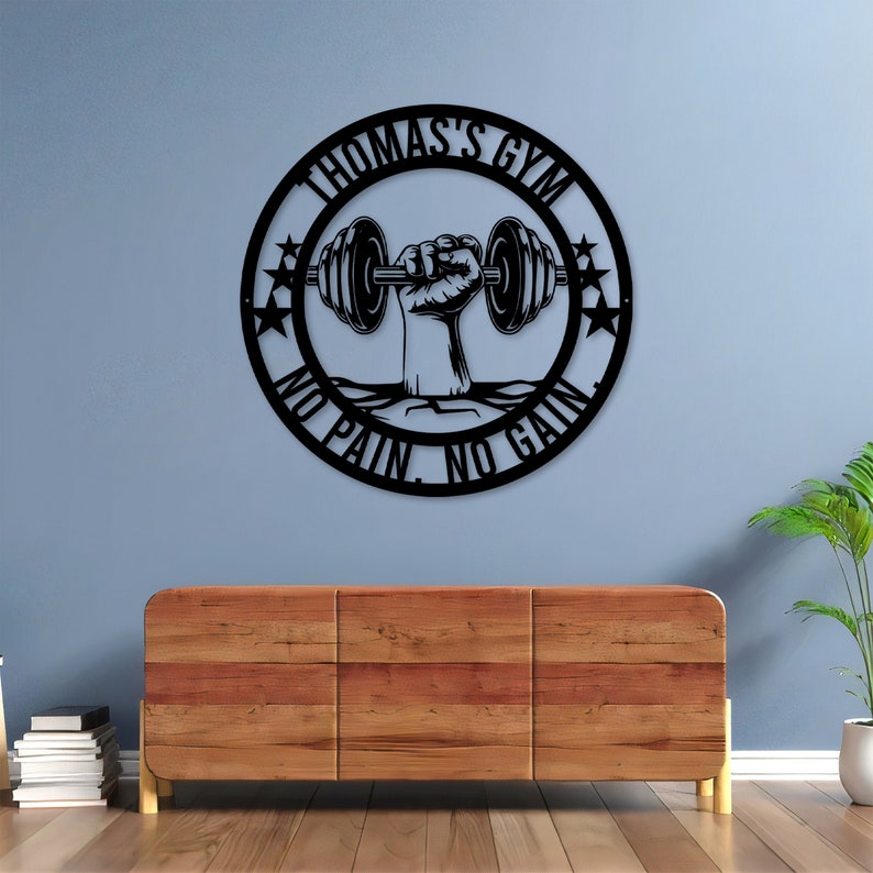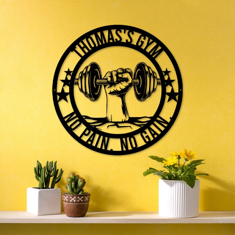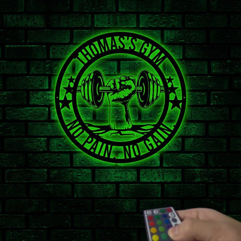Personalized Gym Signs – No Pain No Gain – Custom Name Gym Metal Sign Wall Art With Led Lights – for Workout Room | GearViral