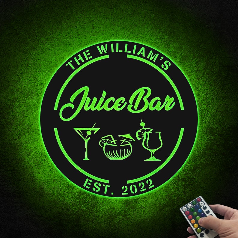 Personalized Juice Bar – Custom Name Date Metal Sign Wall Art With Led Lights – Custom Bar Sign – Gift For Juice Bar Shop | GearViral