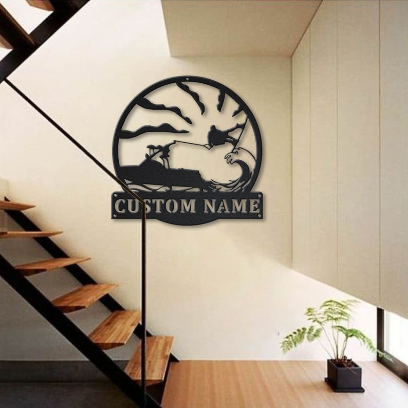Personalized Kneeboarding Monogram Metal Sign Art – Custom Kneeboarding Metal Sign – Kneeboarding Lover Sign Decoration For Living Room | GearViral