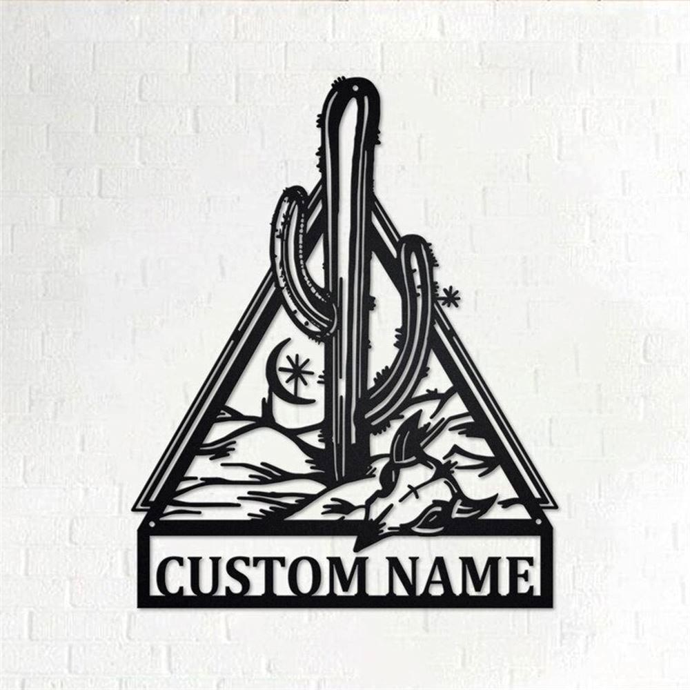 Personalized Metal Monogram Sign – Cactus With Cow Skull Metal Wall Art – Cactus Name Sign – Cactus Home Decor | GearViral
