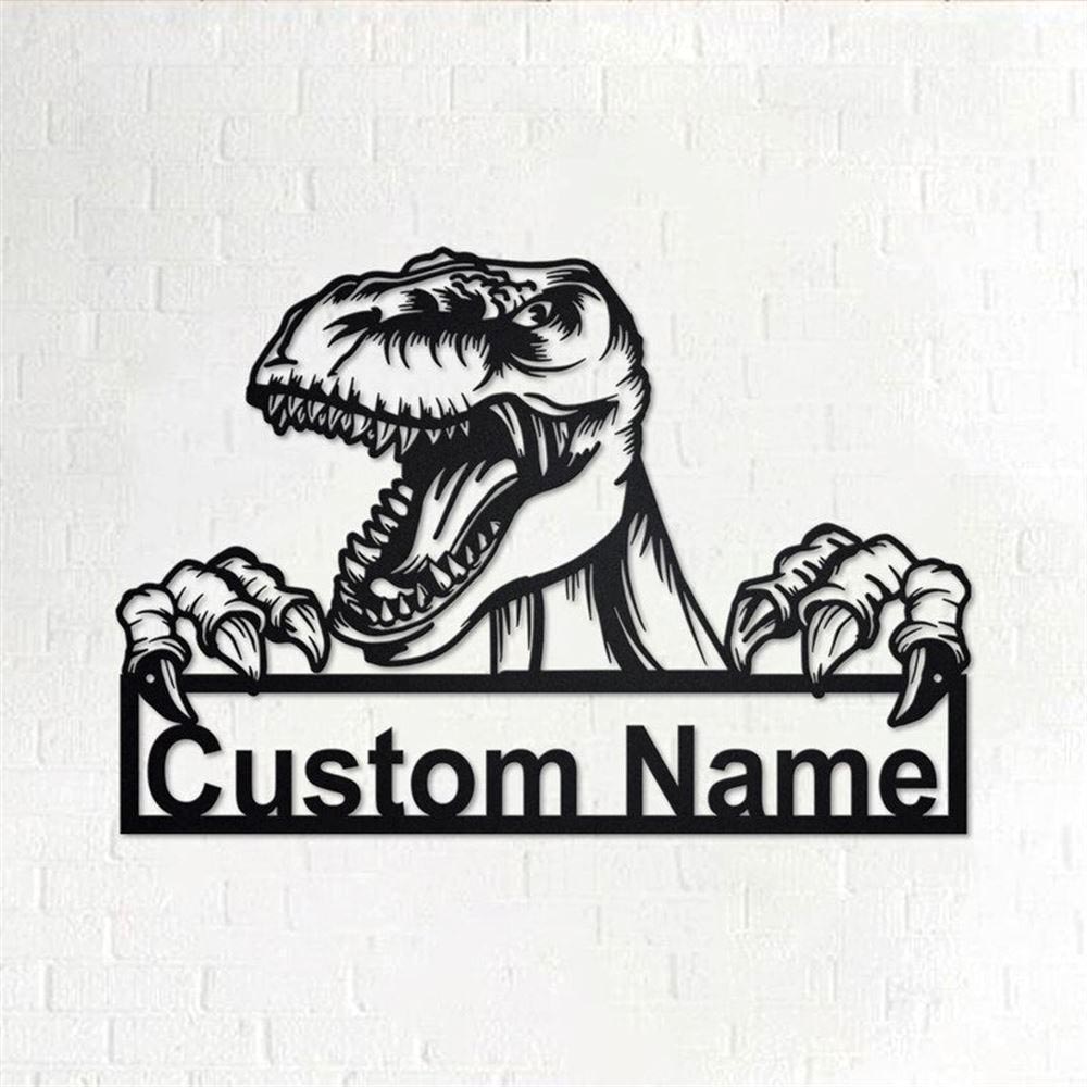 Personalized Metal Monogram Sign – Dinosaur Metal Sign – Dinosaur Metal Wall Art – Dinosaur Metal Wall Decor | GearViral