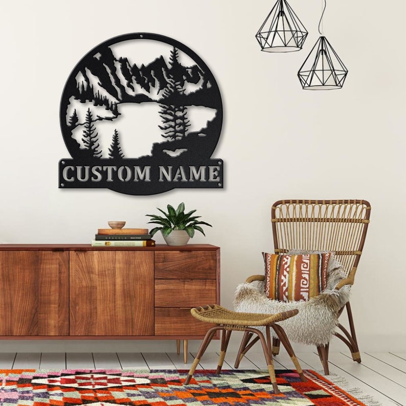 Personalized Mountain Lake Monogram Metal Sign Art | Custom Mountain Lake Metal Wall Art | Housewarming Outdoor Metal Sign | GearViral