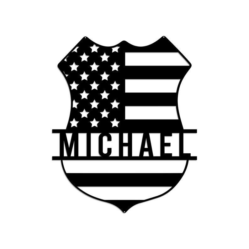 Personalized Police Badge American Flag Metal Wall Art – Thin Blue Line Sign – US Police Officer Gift – Sheriff Badge | GearViral