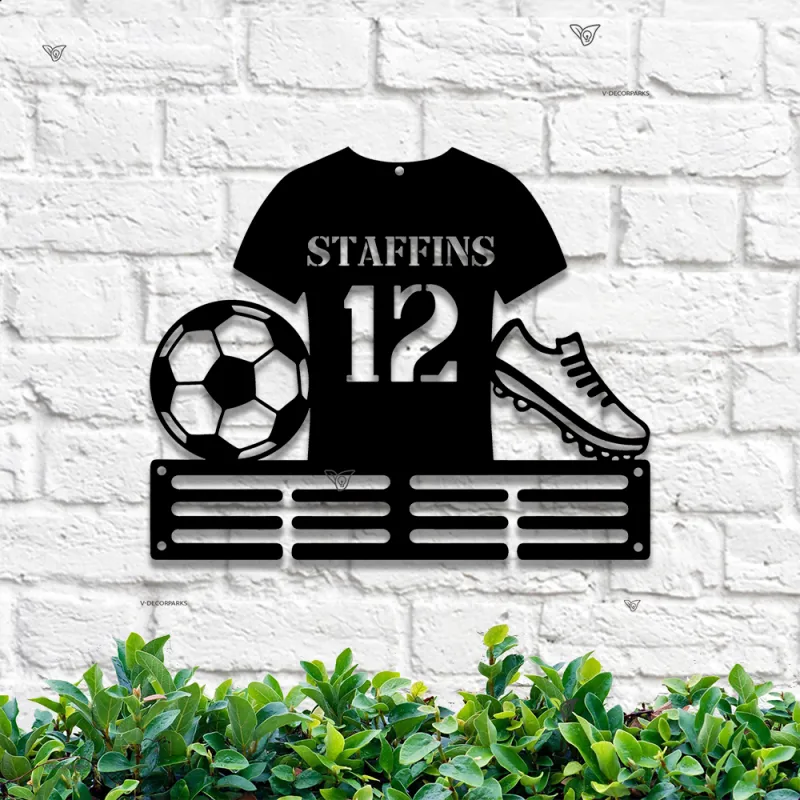 Personalized Soccer Medal Holder – Custom Football Player Name Medal Hanger – Soccer Medal Display Awards Metal Wall Sign | GearViral