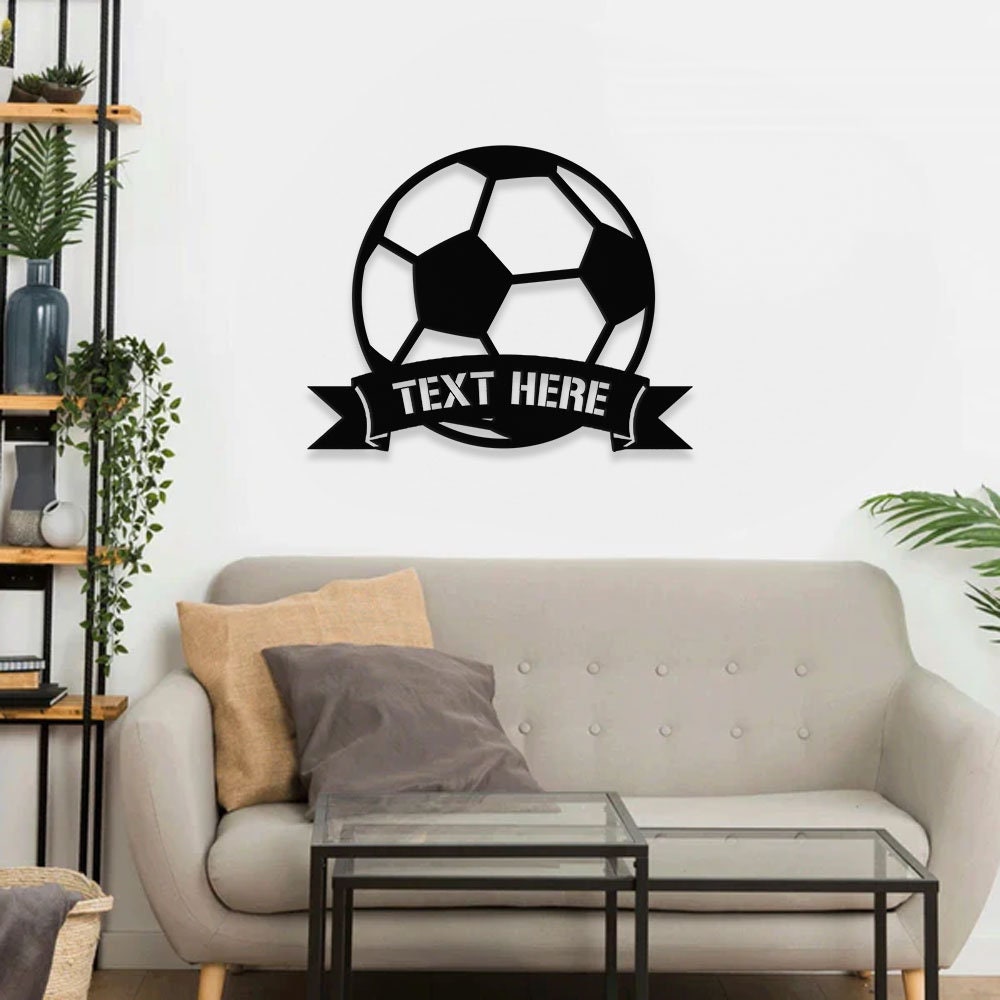 Personalized Soccer Metal LED Sign – Last Name Initial Hanging – Personalize Soccer Metal Sign – Football Wall Sign