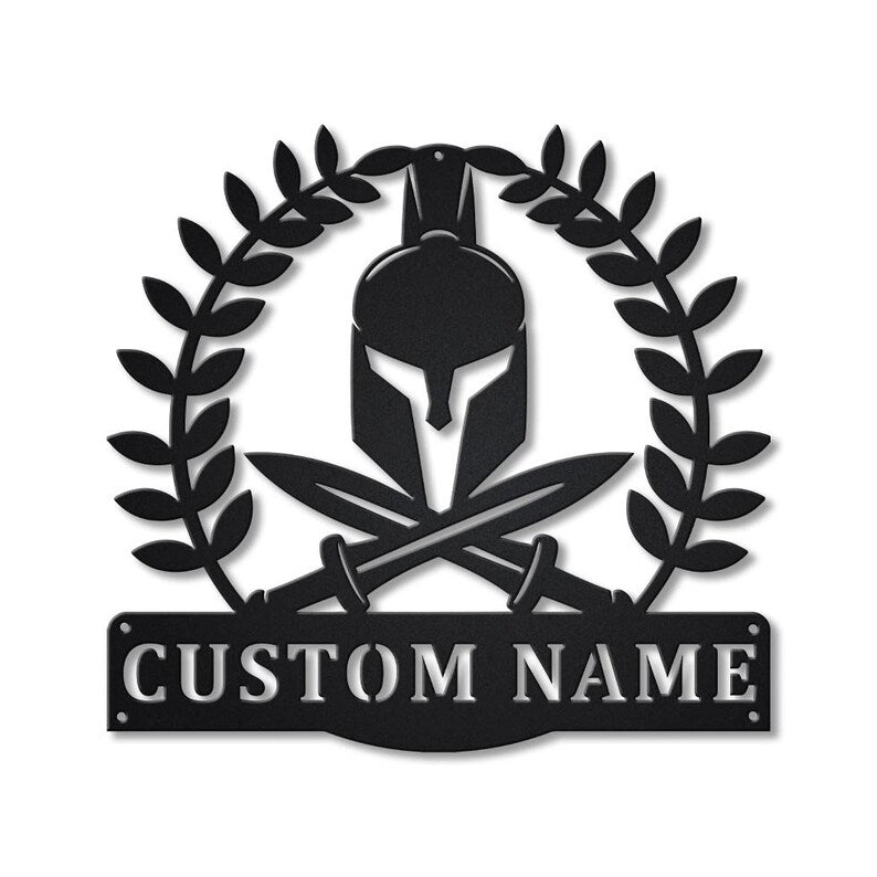Personalized Spartan Warrior Monogram Metal Sign Art | Custom Spartan Warrior Metal Wall Art | Spartan Antler Decor Housewarming Outdoor | GearViral