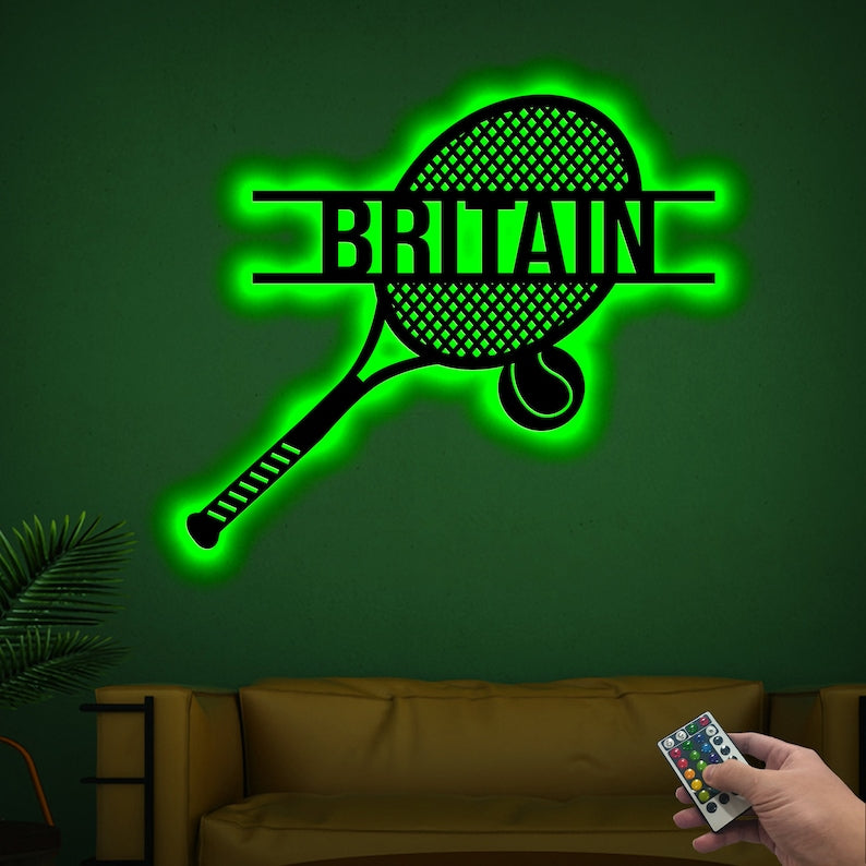 Personalized Tennis Ball And Racket – Custom Name Metal Wall Art With Lights – Gift For Tennis Lover – Girl | GearViral