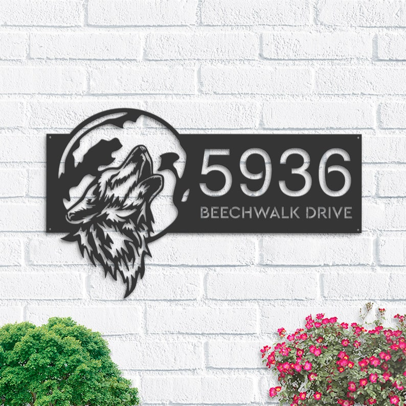 Personalized Wolf Howling On Full Moon Metal Address Sign House Number – Hanging Address Plaque – Yard Sign | GearViral