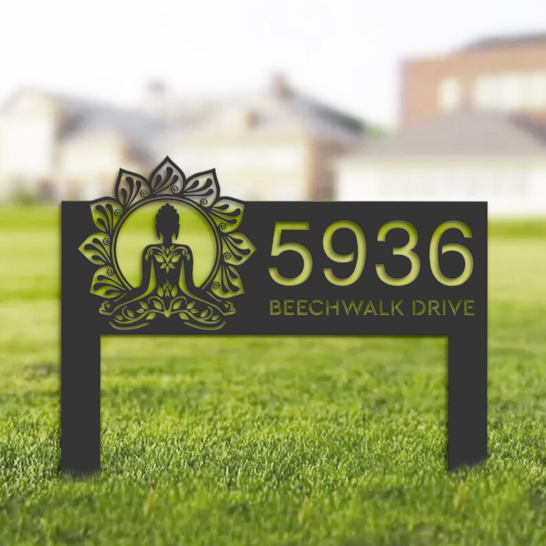 Personalized Yoga Mandala Meditation Metal Address Sign House Number Hanging Address Plaque Yard Sign | GearViral