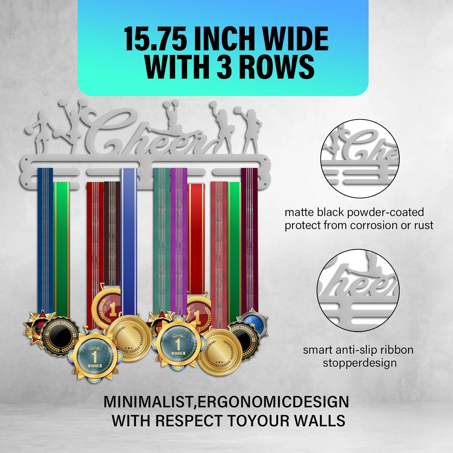 Platinum Medal Holder Display – Cheerleading Award Ribbon Hanger with Screws Metal Wall Mounted Hooks for Over 50 Competition Medals and Ribbons Athlete Gift 15.75 Inch | GearViral