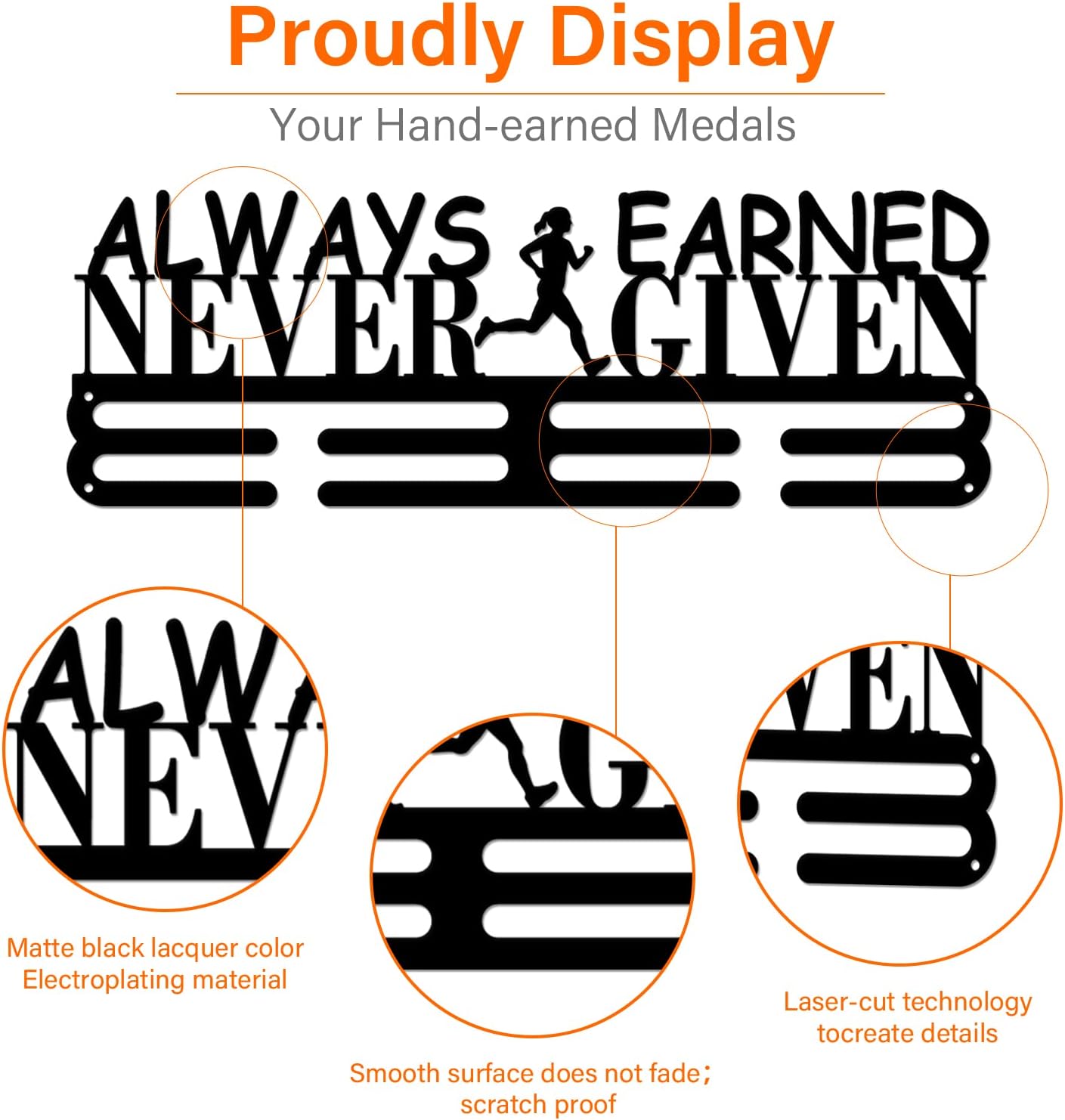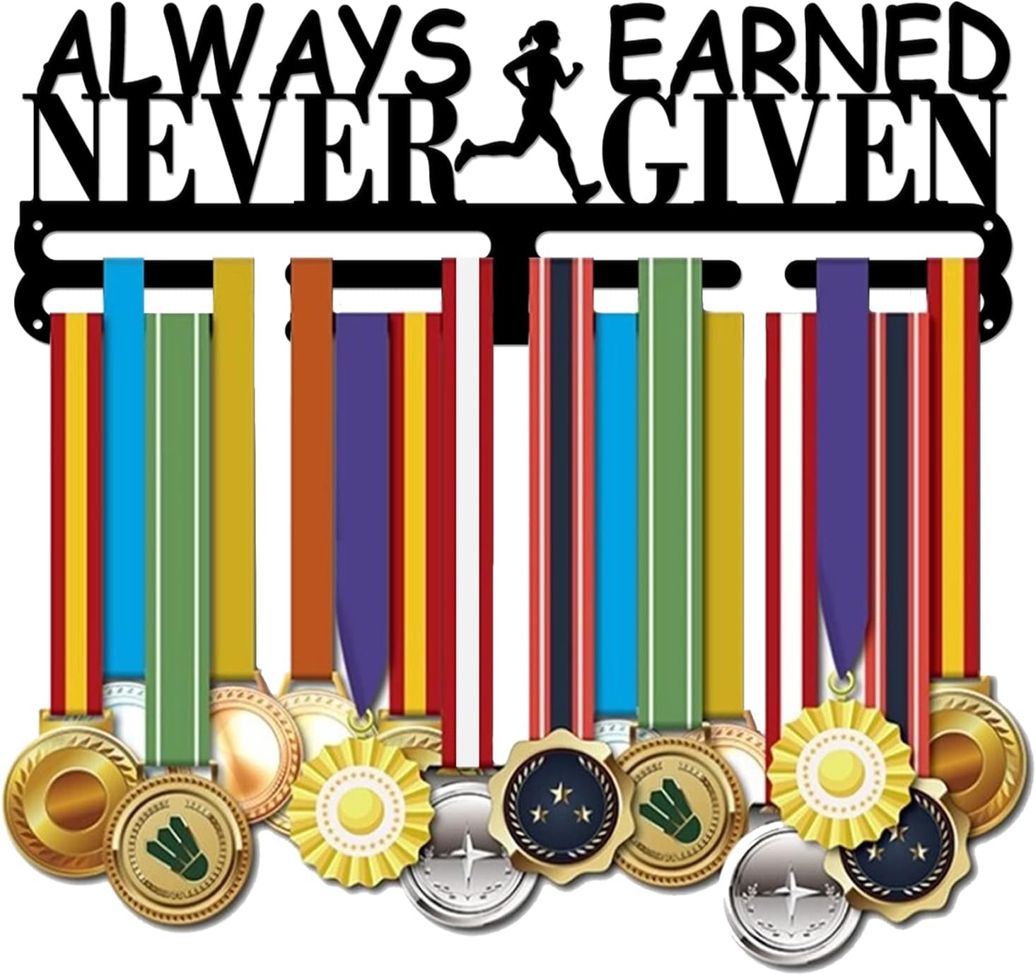 Running Sports Medal Display Hanger Always Earned Never Given Medal Holder Iron Wall Mounted Display Hanger Rack Hook for 60+ Running Gymnastics Medals Black | GearViral