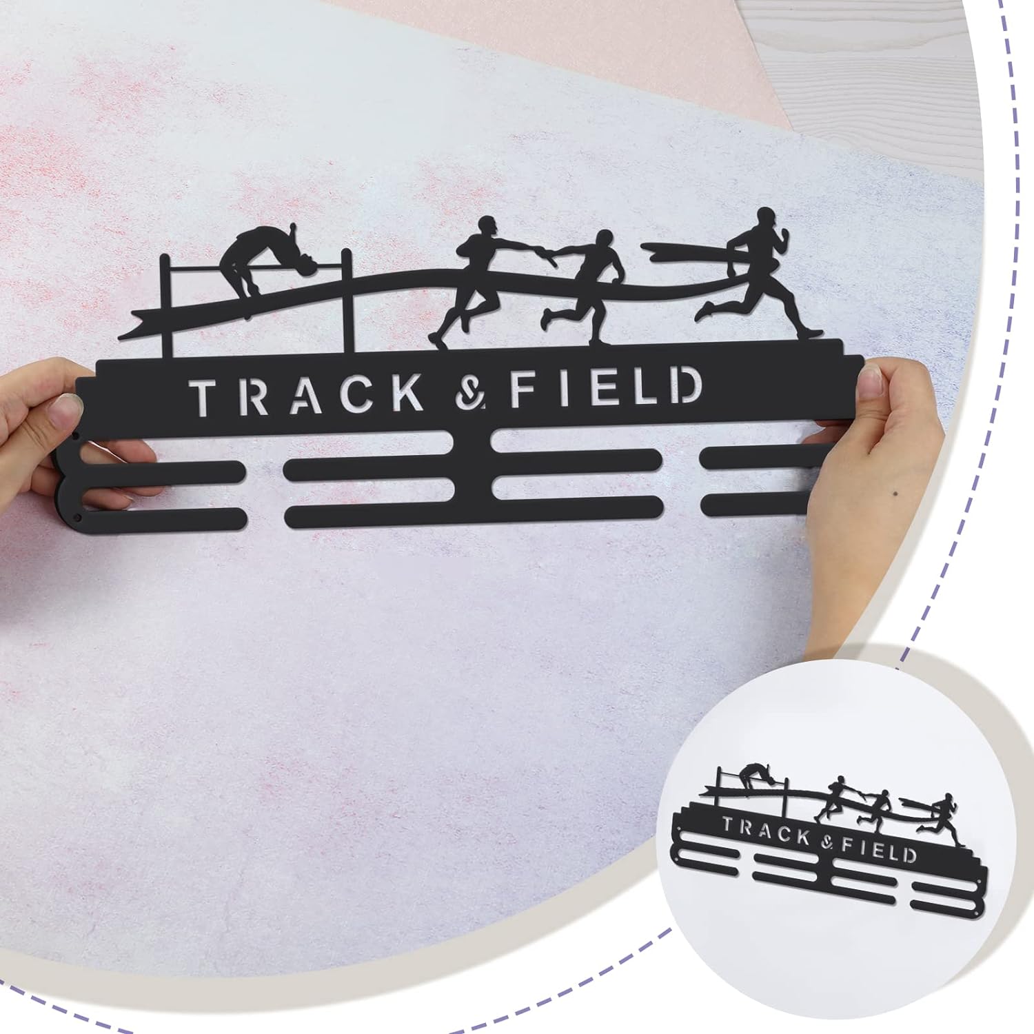 Track & Field Medal Holder Sports Medals Display Black Iron Wall Mounted Hooks for 40+ Hanging Medal Rack Display Competition Medal Holder Display Wall Hanging 40x15cm | GearViral