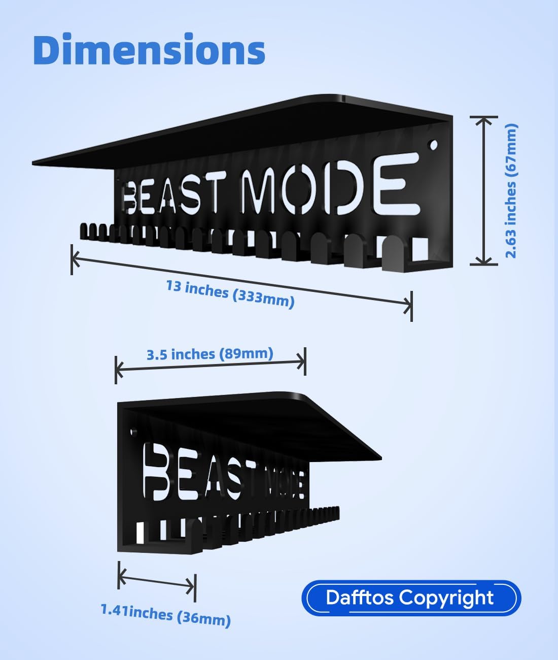 Trophy Medal Shelf Hanger Ribbon Holder Display Medals Wall Metal Rack Organizer Frame Awards Ribbon Cheer Gymnastics Soccer Softball beast mode Runner Race Hold Medals Easy to Install | GearViral