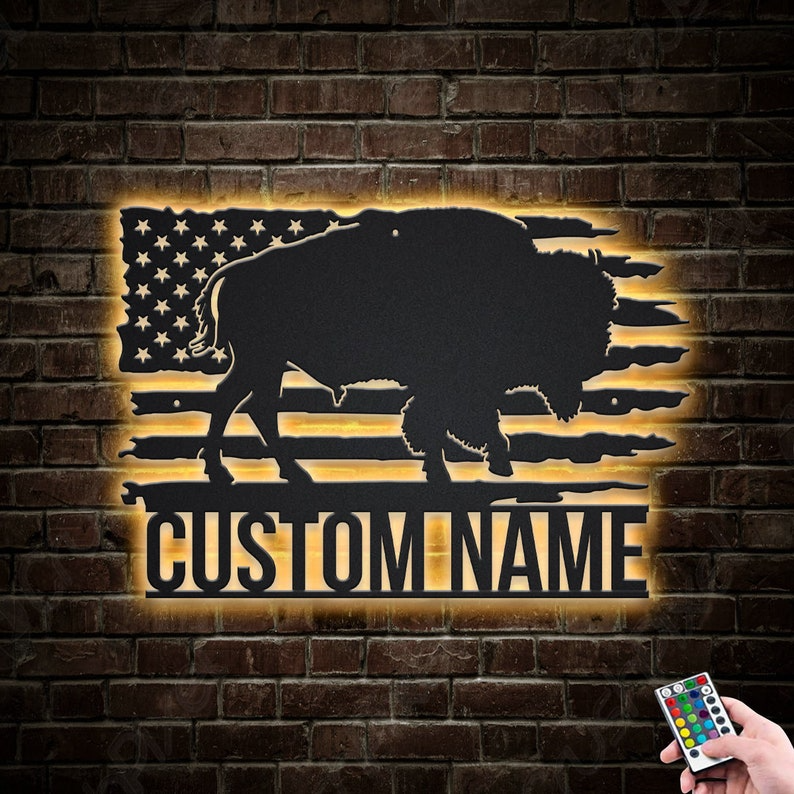 US Buffalo Metal Wall Art LED Lights V1 – Custom Buffalo Animal Metal Signs – Buffalo Animal Neon Sign Metal Wall Decor | GearViral